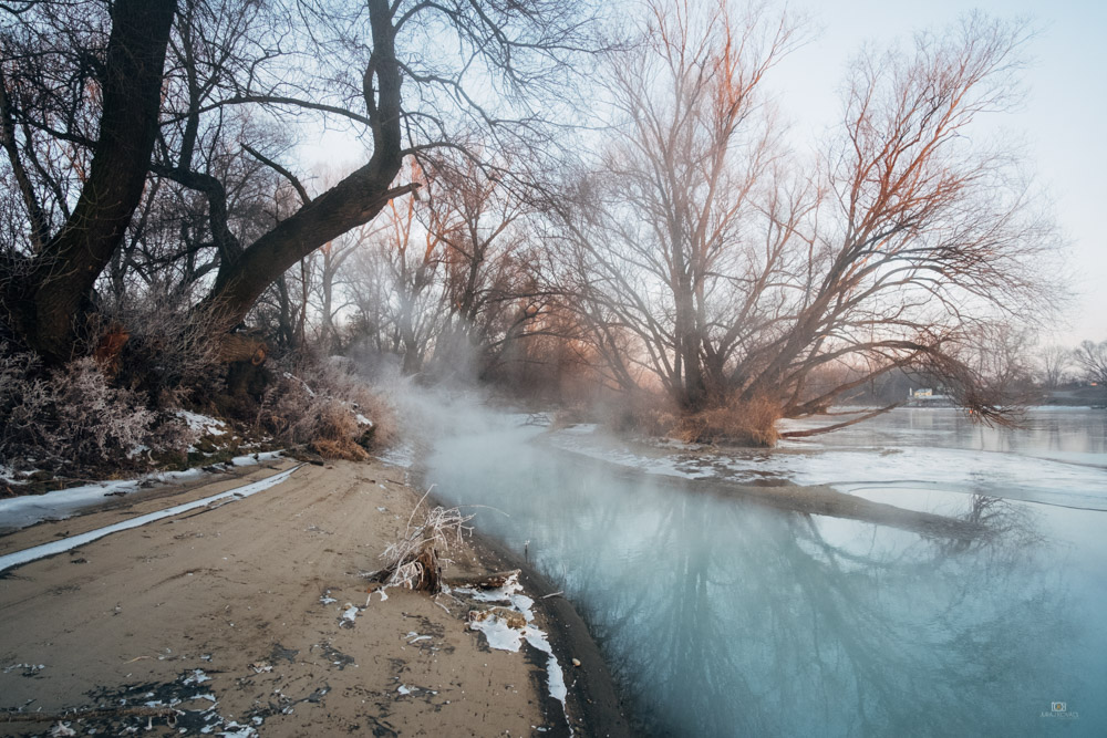 Príroda nám dopraje ranné mínusy ako sa patrí. Pohľad na teplomer ukazujúci -6 sa stáva bežnou rutinou, ale hodnoty klesajúce pod -10 už dvíhajú hlavy. Váh zamŕza, len geotermálny výpust zdiaľky signalizuje svojou parou a tyrkysovou farbou polohu kde sa nachádza.
