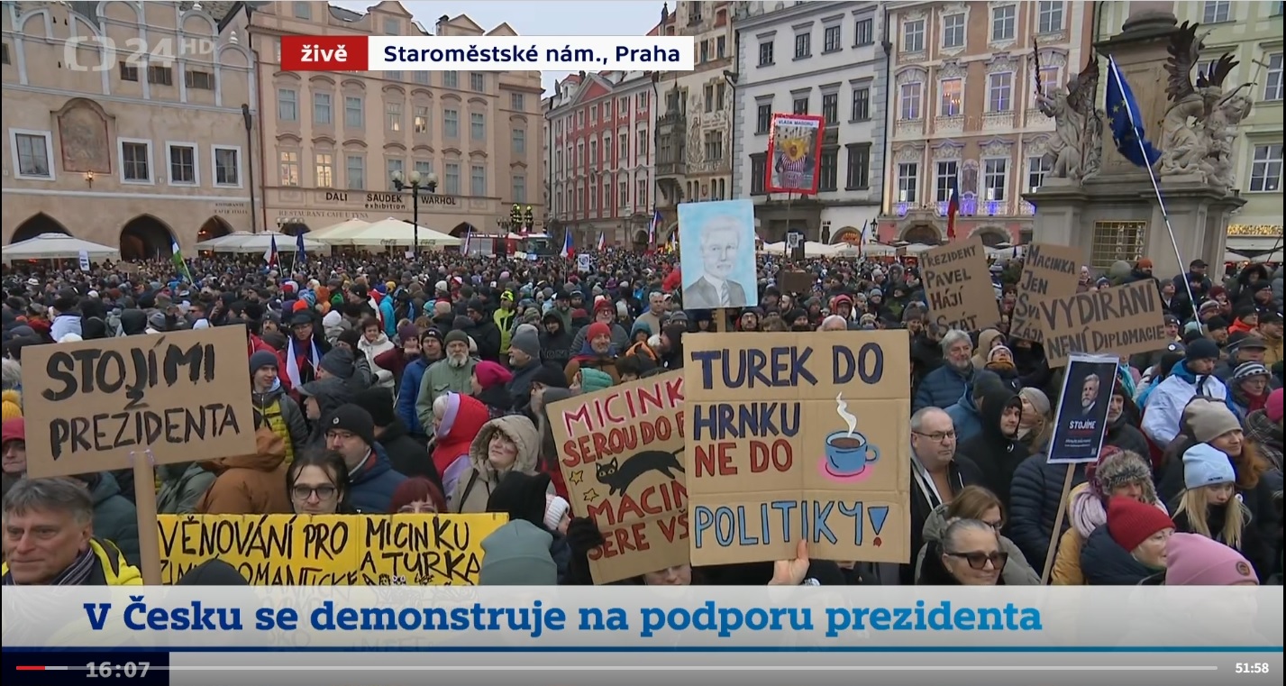 Reportáž ČT24, transparent vlevo.