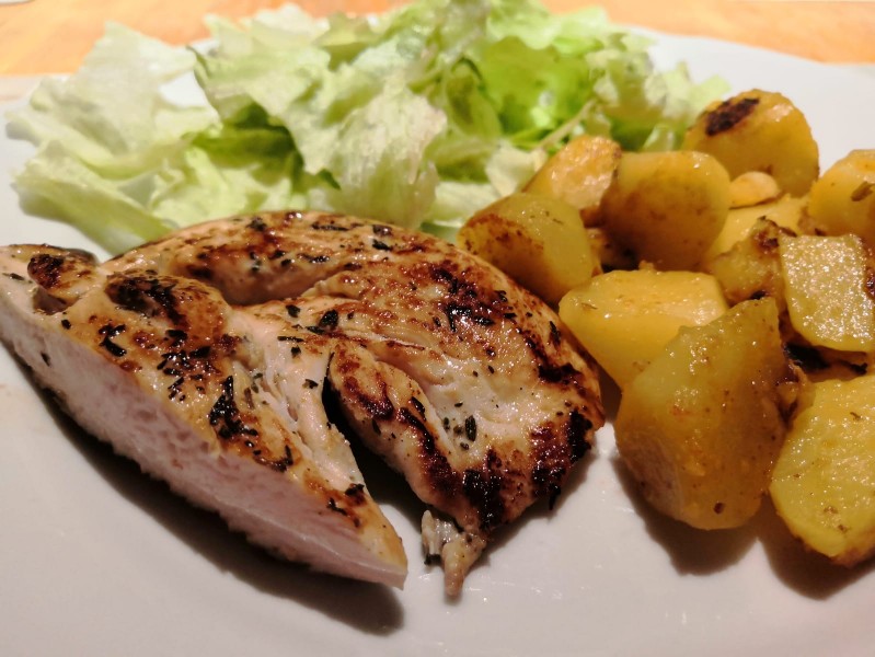 Docela se tentokrát povedlo. Zkusil jsem hodku před pečením namarinovat maso pomocí kari, mletyho zázvoru, pepřem a kmínem.
