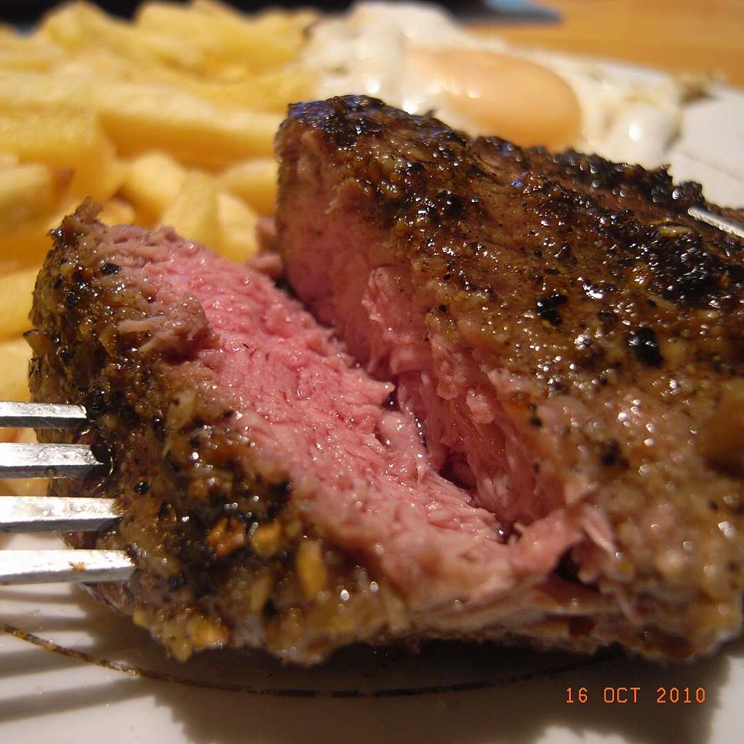 Osmahlá anglická slanina s cibulkou a kořením. Aj trochu naplněná do plece (jestli si pamatuju co za maso jsem to pekl).
