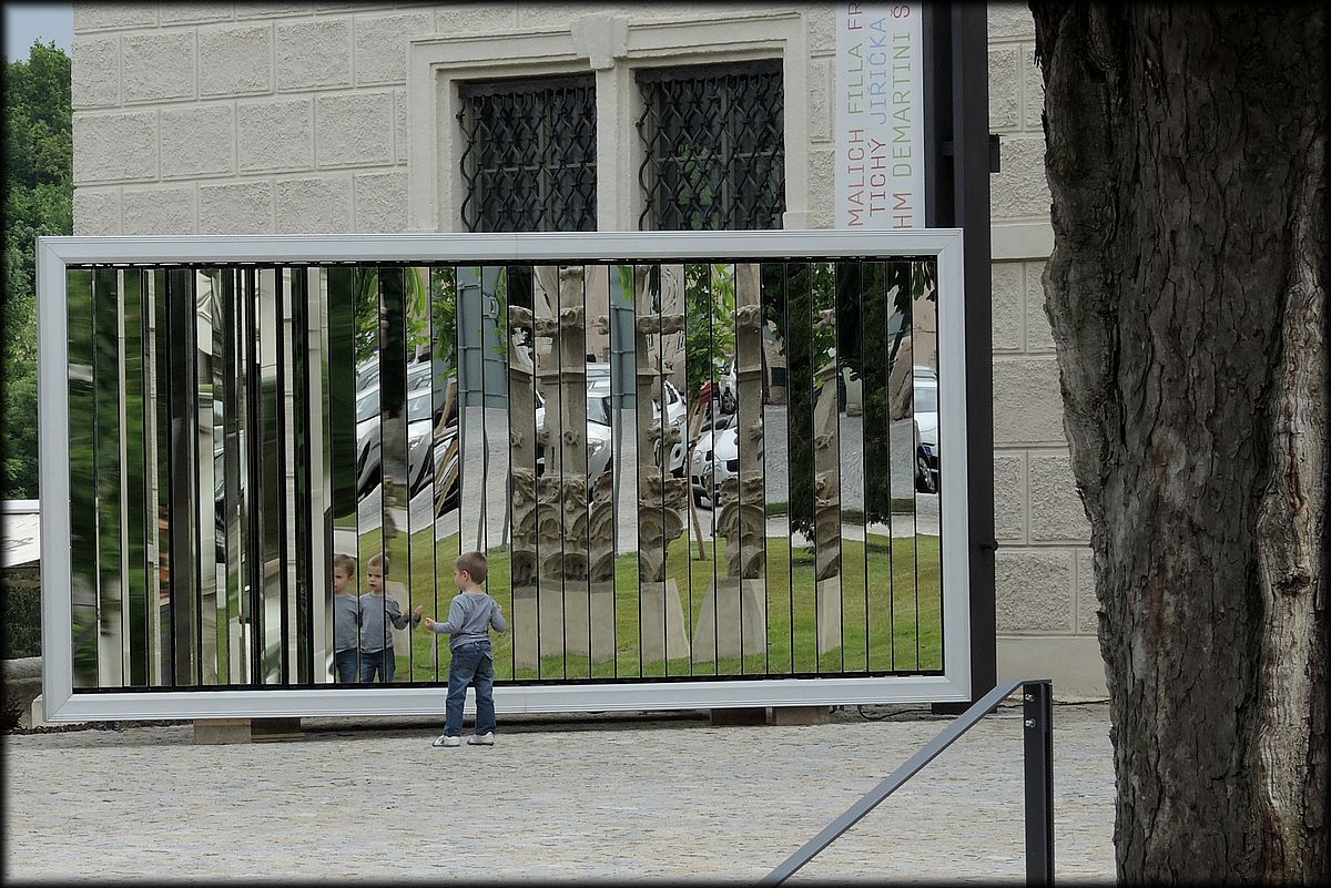 máme před GASKem novou instalaci-měnivý zrcadlo, jako billboardy to funguje,