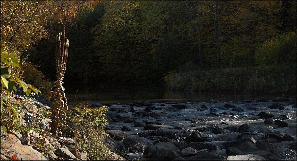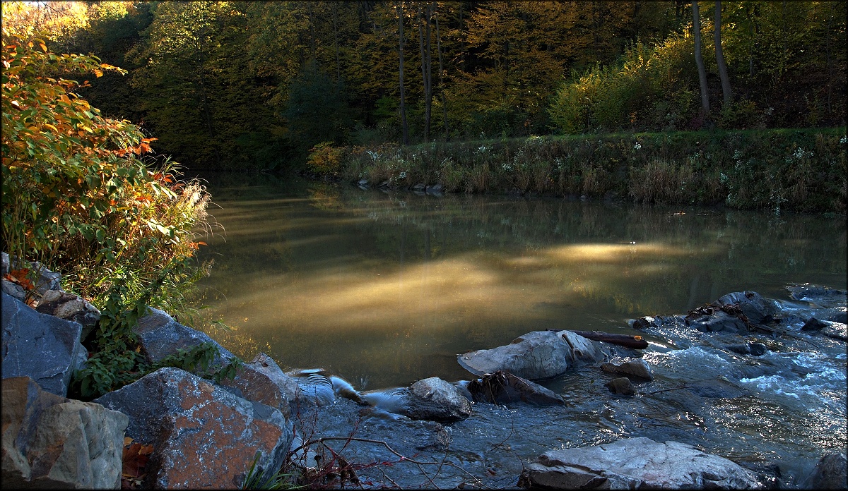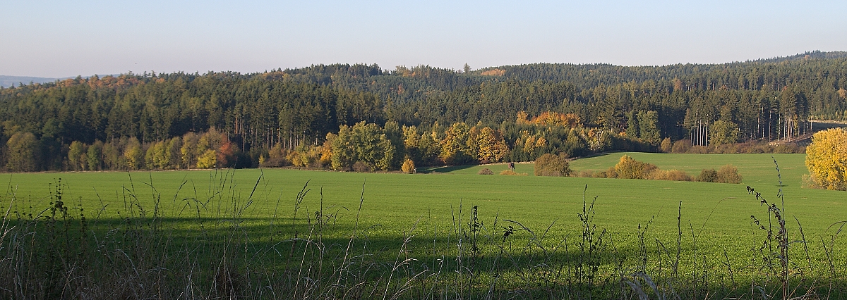 Ze včerejší procházky. Ráno tu byla inverze, až to vypadalo, že v lese zabloudíme, ale před obětem se rozpustila a svítil oskar.
