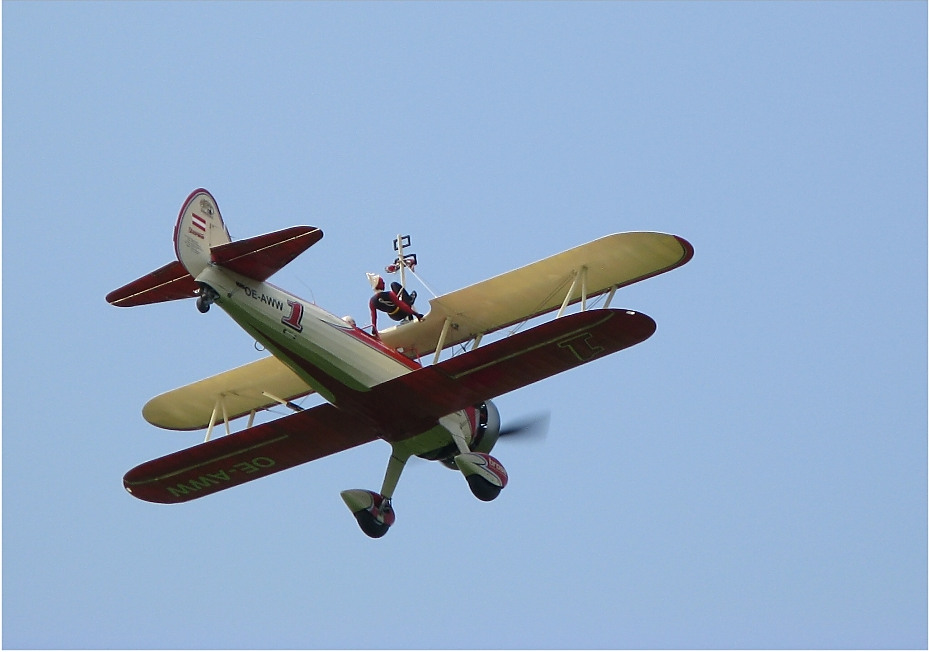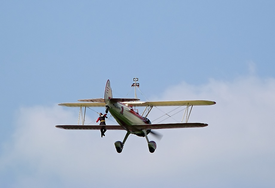 Tradiční letecká show, která je největší jarní událostí svého druhu v celé České republice nabídne letos řadu českých premiér. Právě největší lákadlo – německá skupina Wing walking team se u nás představí vůbec poprvé. Jde o světově jedinečnou show, protože akrobatka chodí po křídlech a předvádí nejrůznější kousky bez padáku! Jištěna je pouze tenkým ocelovým lankem. 38ti letá Peggy ukazuje své kousky už od roku 1990 a kromě vystoupení na leteckých show je často najímána filmovými štáby pro natáčení kaskadérských scén. Zajímavostí je, že v celé řadě zemí (např. USA) jsou podobná akrobatická vystoupení zakázána, protože je úřady považují za příliš velký hazard. My ale Peggy chodící po křídle uvidíme už 1. a 2. května, kdy na letišti Plasy proběhne další ročník DNE VE VZDUCHU S RÁDIEM KISS PROTON. Jako tradičně se po oba dva dny bude program opakovat, aby si na své přišli úplně všichni.