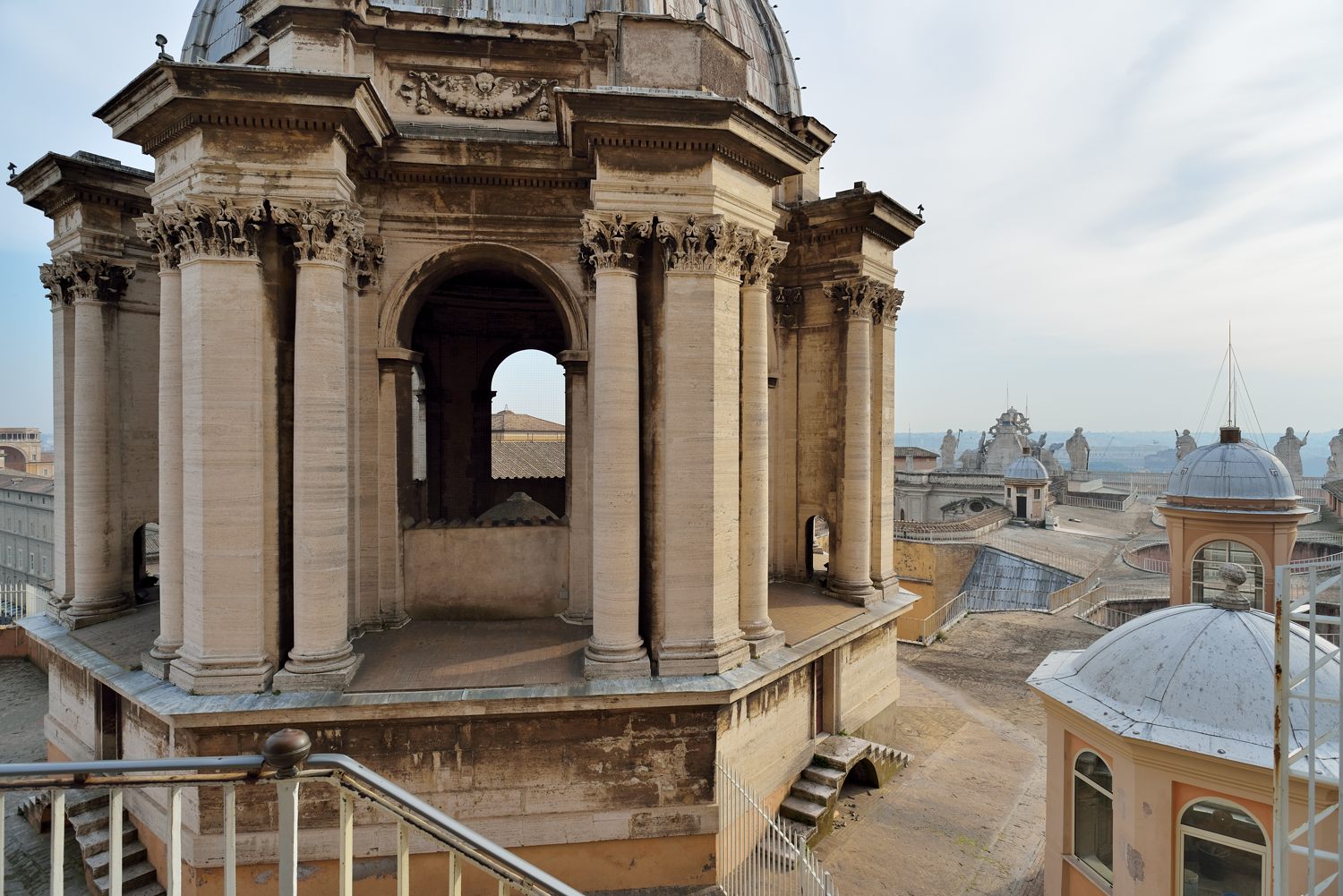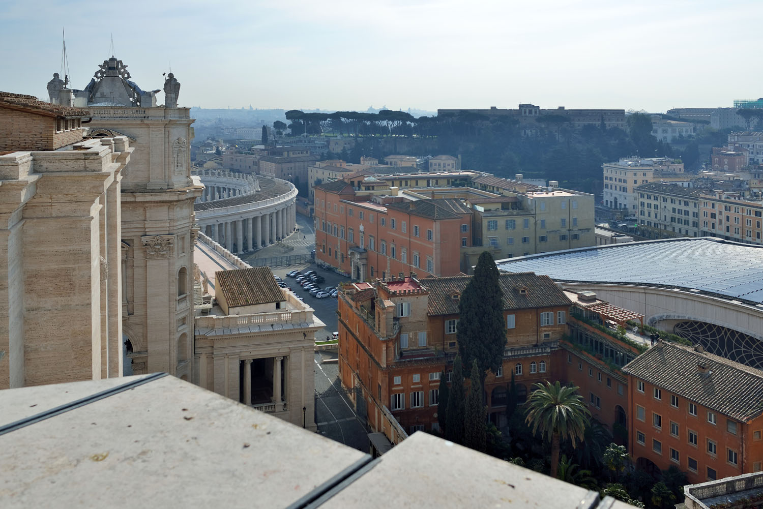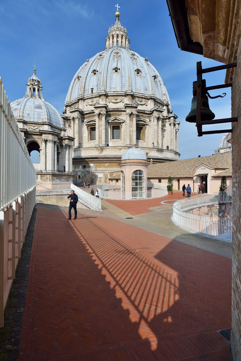 Na předposlední fotce ta stodola vpředu uprostřed je Sixtinská kaple, za ní doleva se táhnou vatikánská muzea. Na poslední fotce jsou vatikánské zahrady. Srovnal jsem perspektivu (2559, 2560), prostor pod kupolí je jakoby blíž a zvětšený.