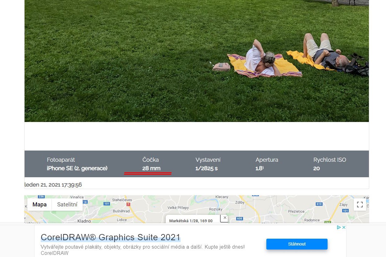 U iPhone mě píše objektiv přepočet 28 mm (exif : FocalLengthIn35mmFilm 28)