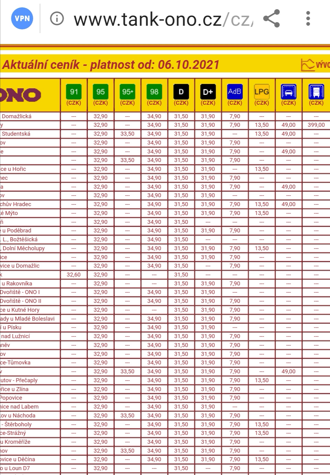 Nějak se zaplacl původní příspěvek o současné ceně PHM u celorepublikové sítě stanic ONO. Dávám ho tedy ještě jednou... ;)