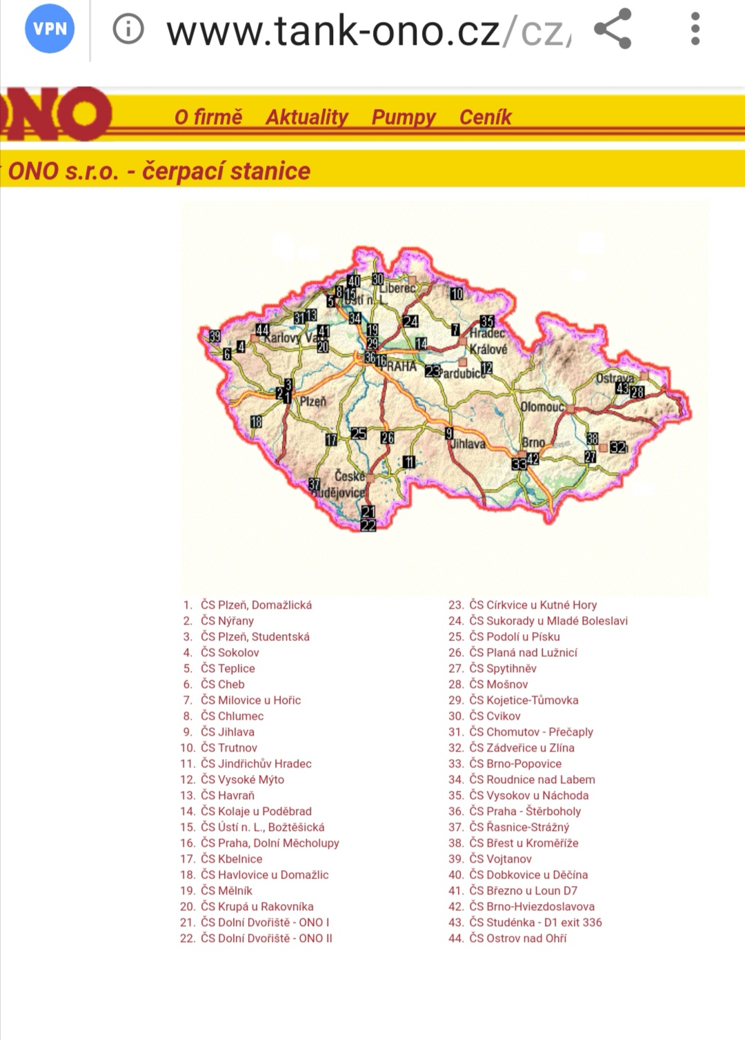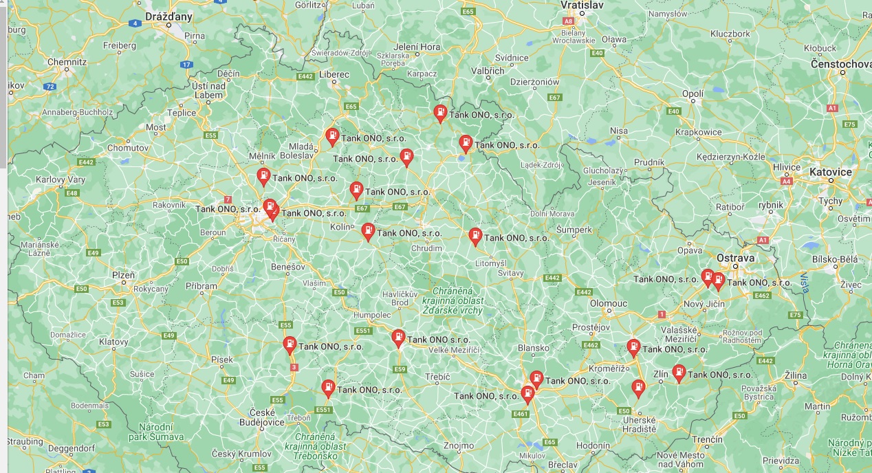 Mapka umístění celorepublikové sítě 44 čerpacích stanic ONO.viz web ONO.. :)