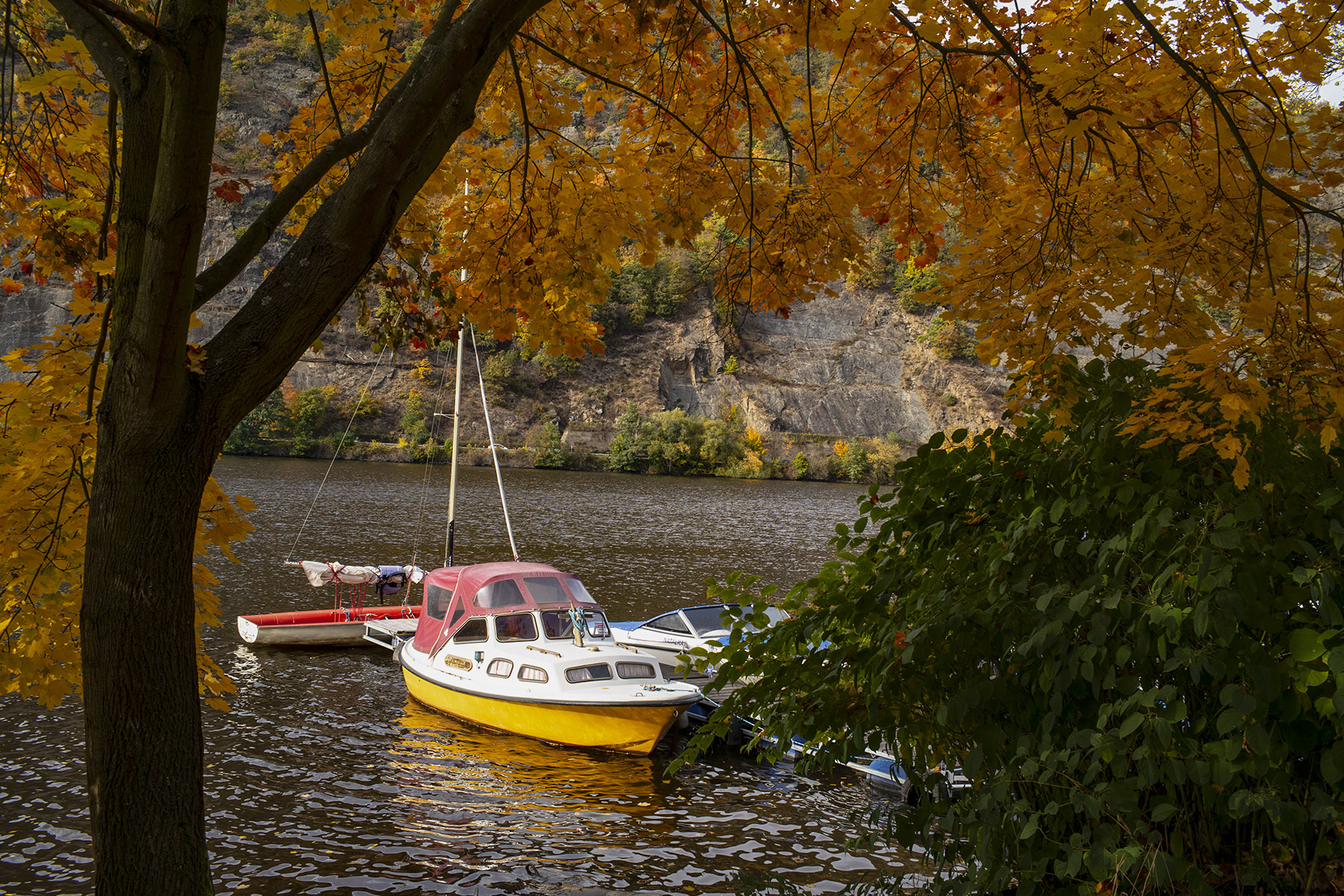 U nás na horní straně přehrady je to kolísání hladiny ještě horší. Kdo to neví a zakotví loď, jako třeba tento majitel, tak během hodiny jí může mít na suchu. Tady to dopadlo ještě hůře, přivázal jí moc blízko a při poklesu hladiny se naklonila tak, že se do ní nabrala voda. Na boku lodi je ještě vidět, jak velký náklon měla.