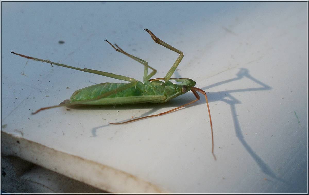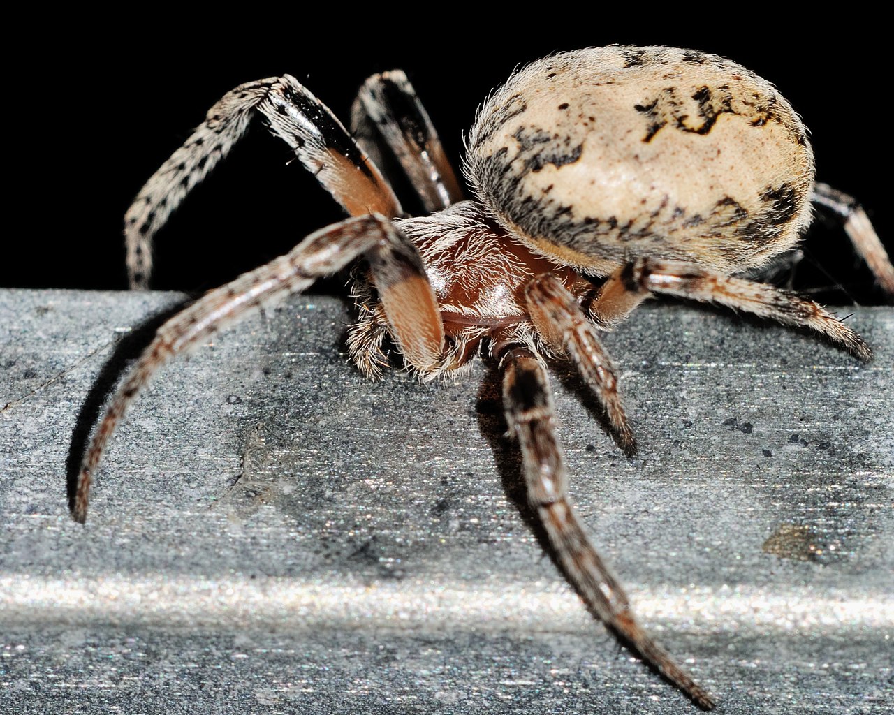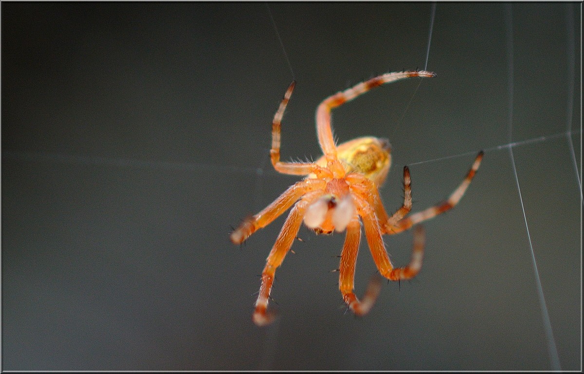 Dal jsi pavoučka, dám taky, nechtěl jsem ho dávat hned po Moničiný ledničce, abych ji nevyděsil. Natvrdo bleskem jen s širokoúhlou rozptylkou - v noci, světlý pozadí jsou dveře auta, před kterým na zábradlí chatky tahle akrobatka exhibovala.