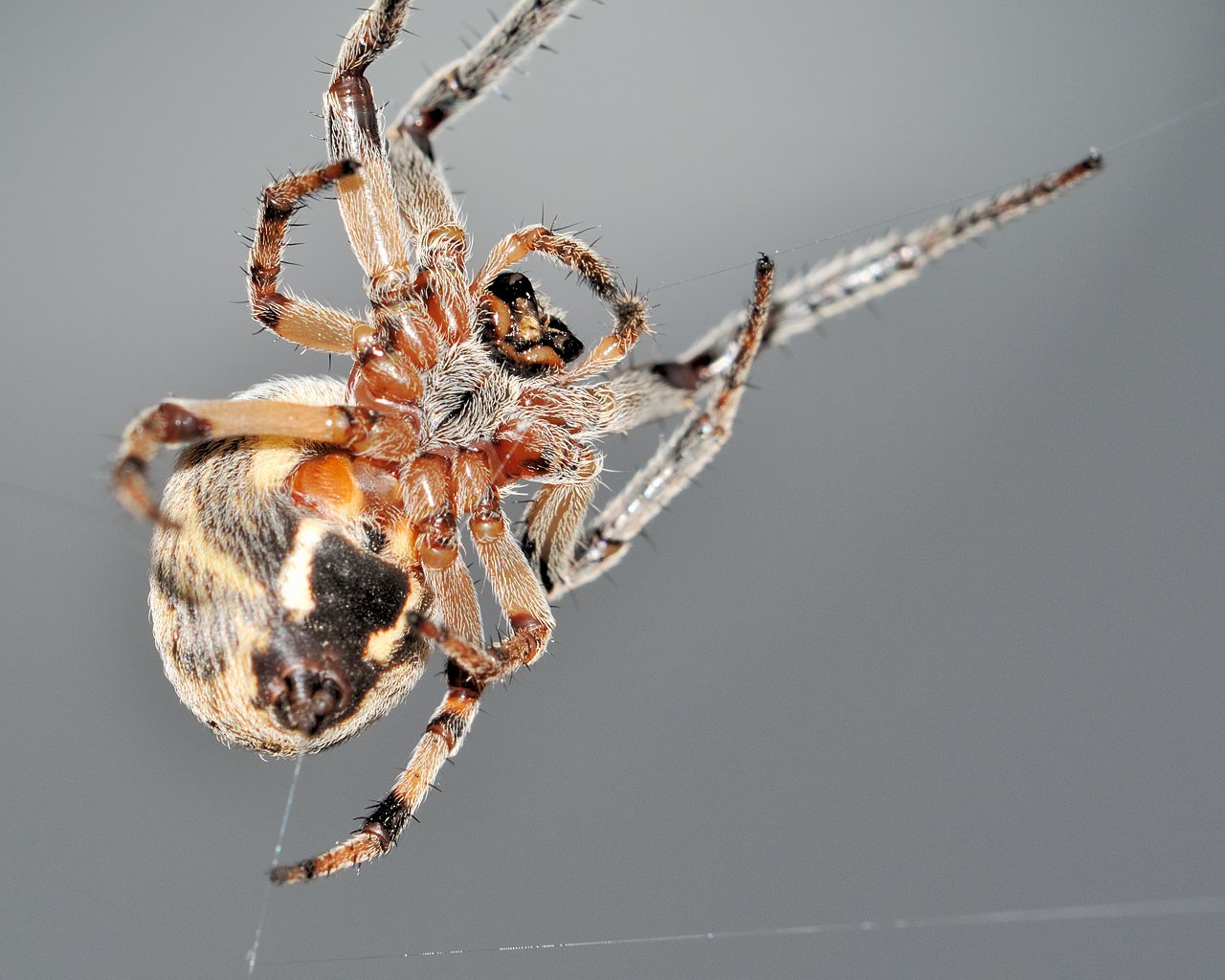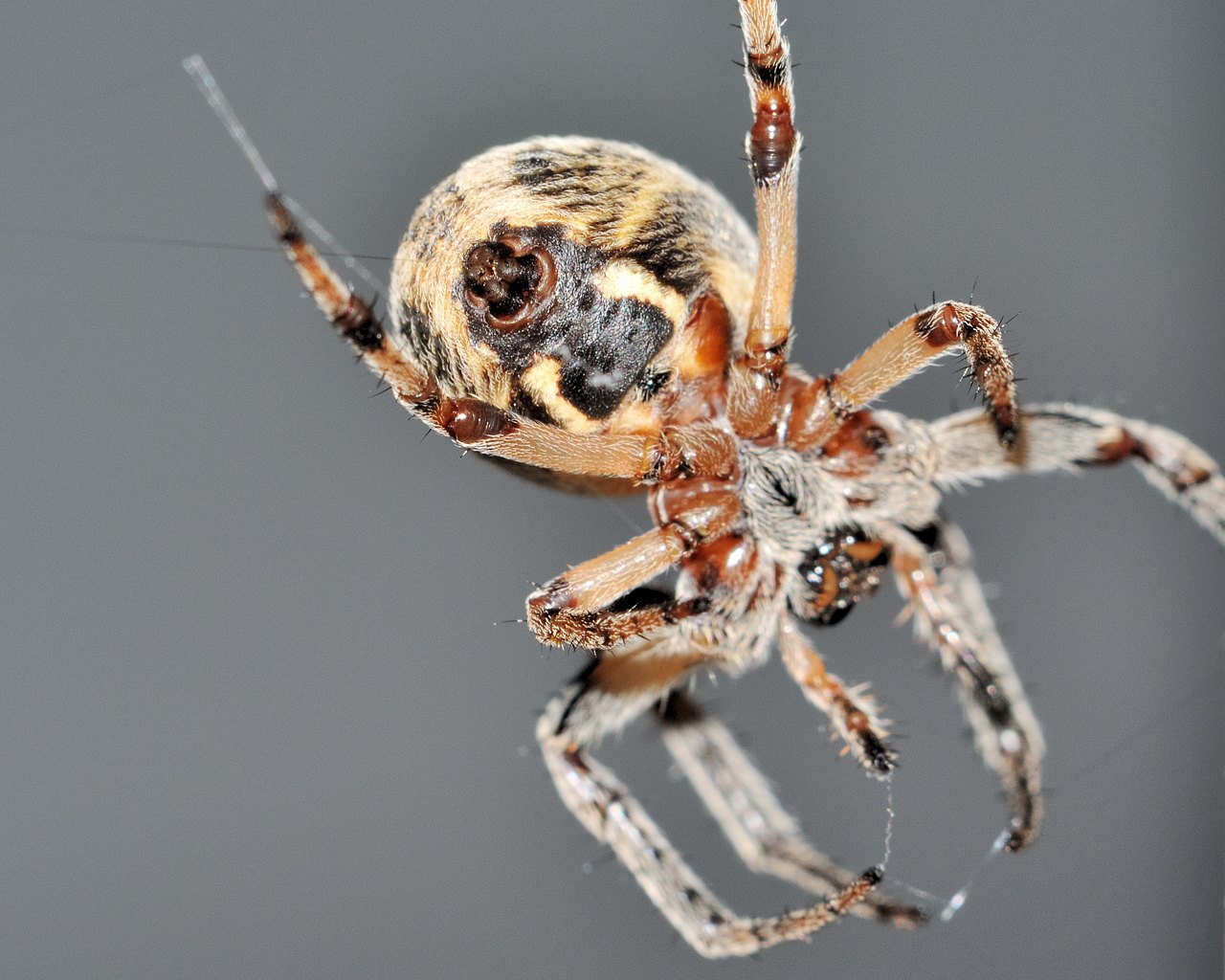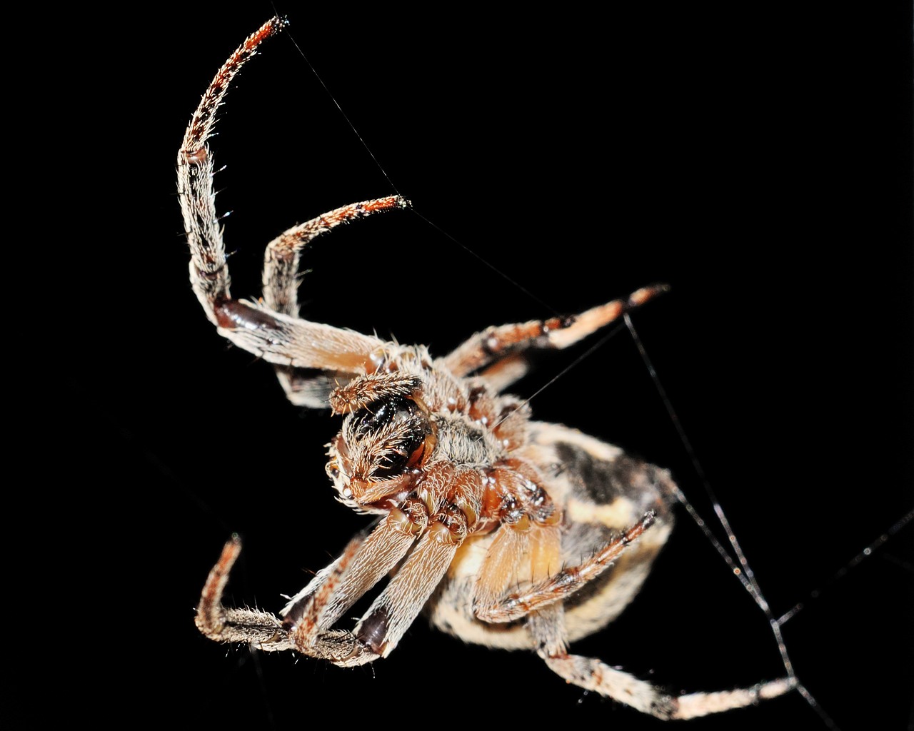 Dal jsi pavoučka, dám taky, nechtěl jsem ho dávat hned po Moničiný ledničce, abych ji nevyděsil. Natvrdo bleskem jen s širokoúhlou rozptylkou - v noci, světlý pozadí jsou dveře auta, před kterým na zábradlí chatky tahle akrobatka exhibovala.