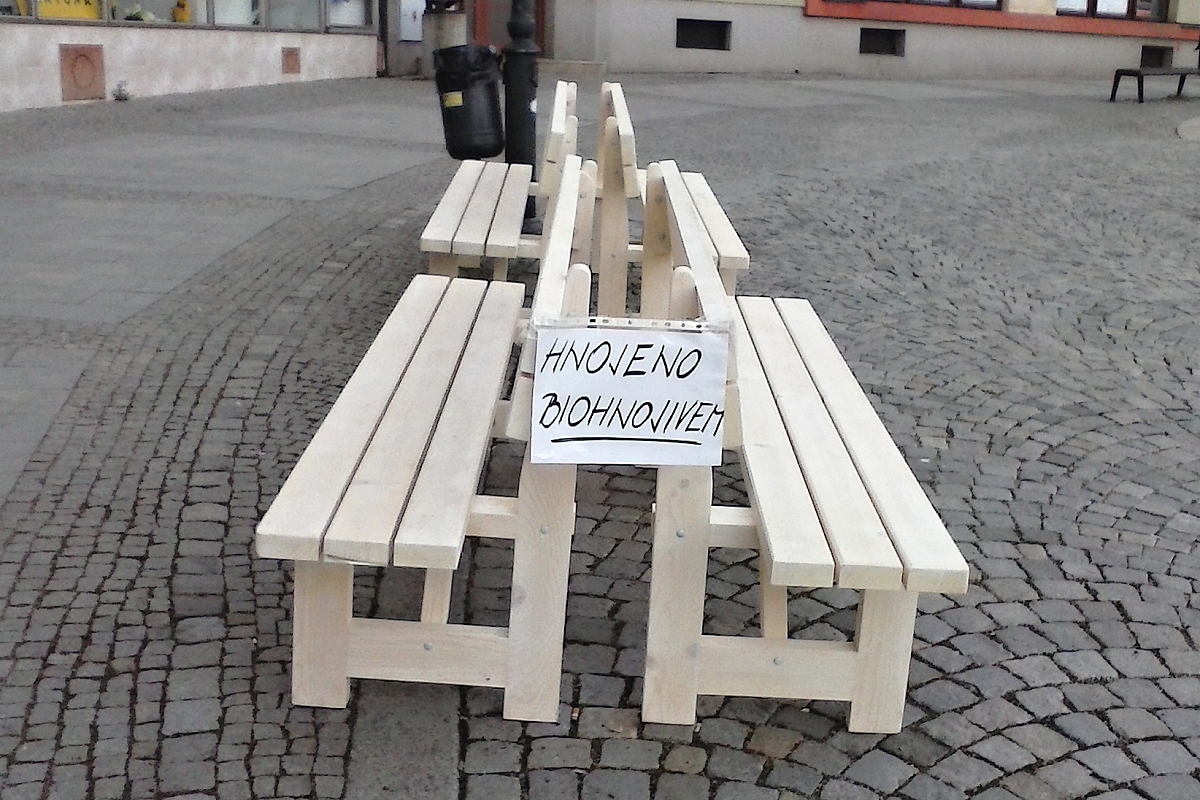 A jedna momentka z mobilu - máme tu lavičky z bio dřeva.....