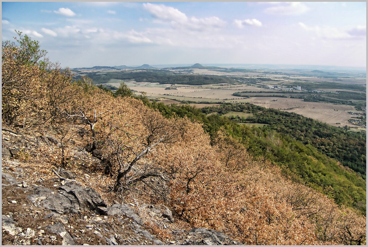 Bylo šílené dusno a sucho ....po dost náročném výstupu pomalu na kolaps. Nejsmutnější ale byl pohled na uschlé porosty dubů které lemovaly vrcholek ( a přitom se jedná o vzácné acidofilní a teplomilné druhy, které jsou jedním z důvodů vyhlášení zdejší NPR ) (y)