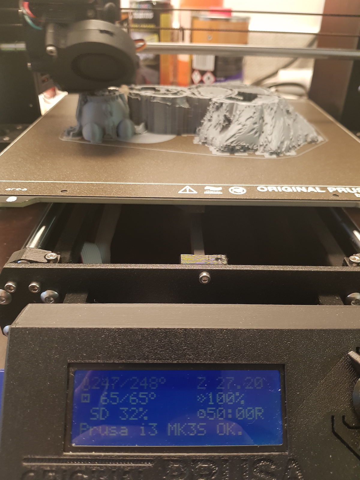 Mám tiskárnu v polystirenové krabici kvůli ABS. Ale teď na opravu a testy je na ponku.