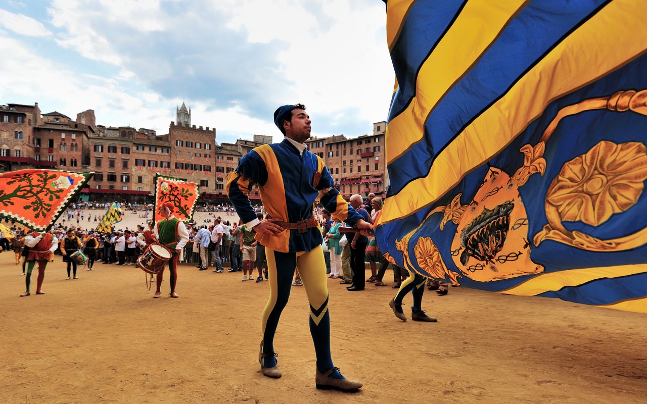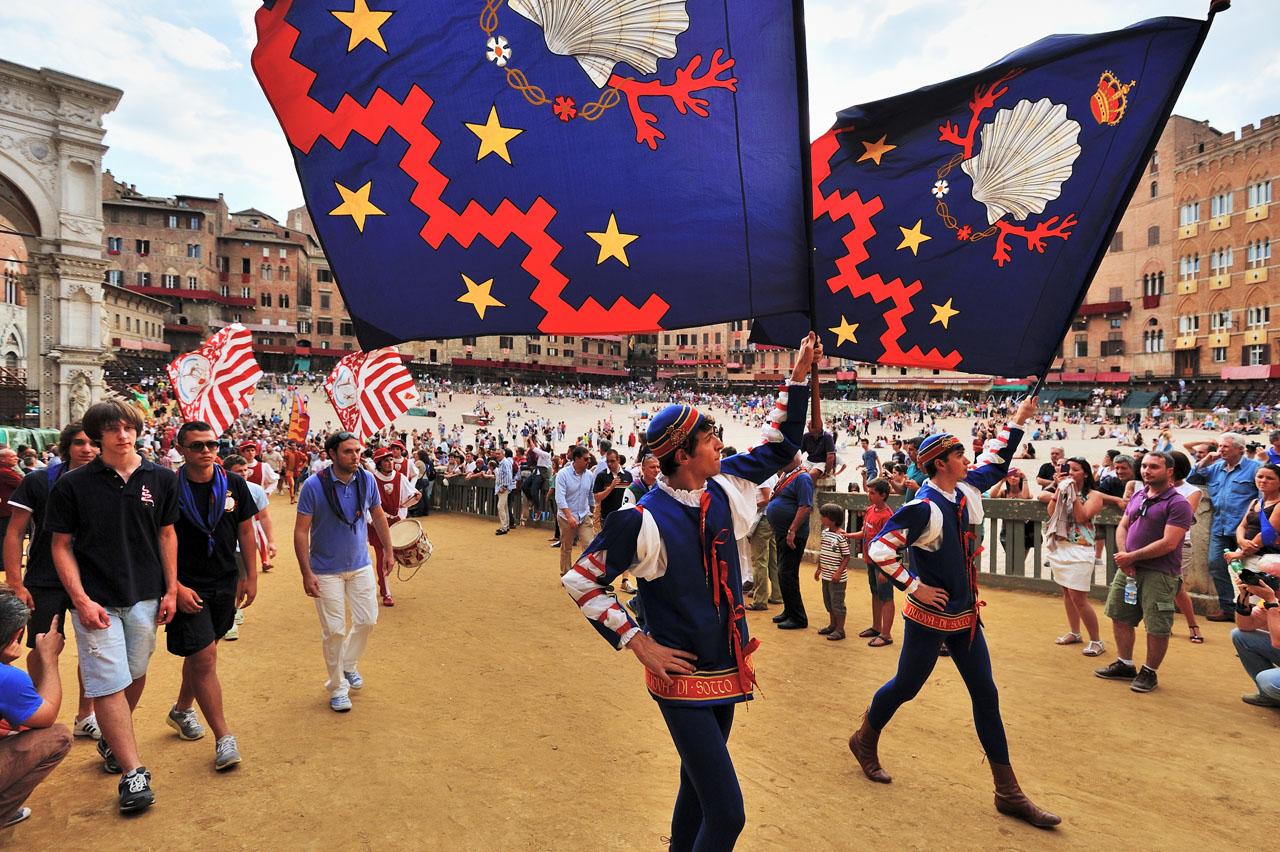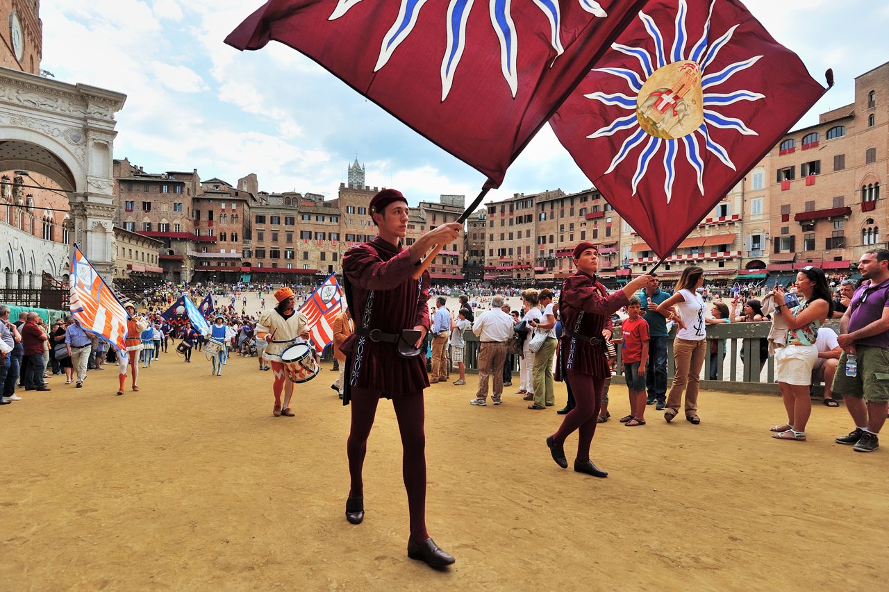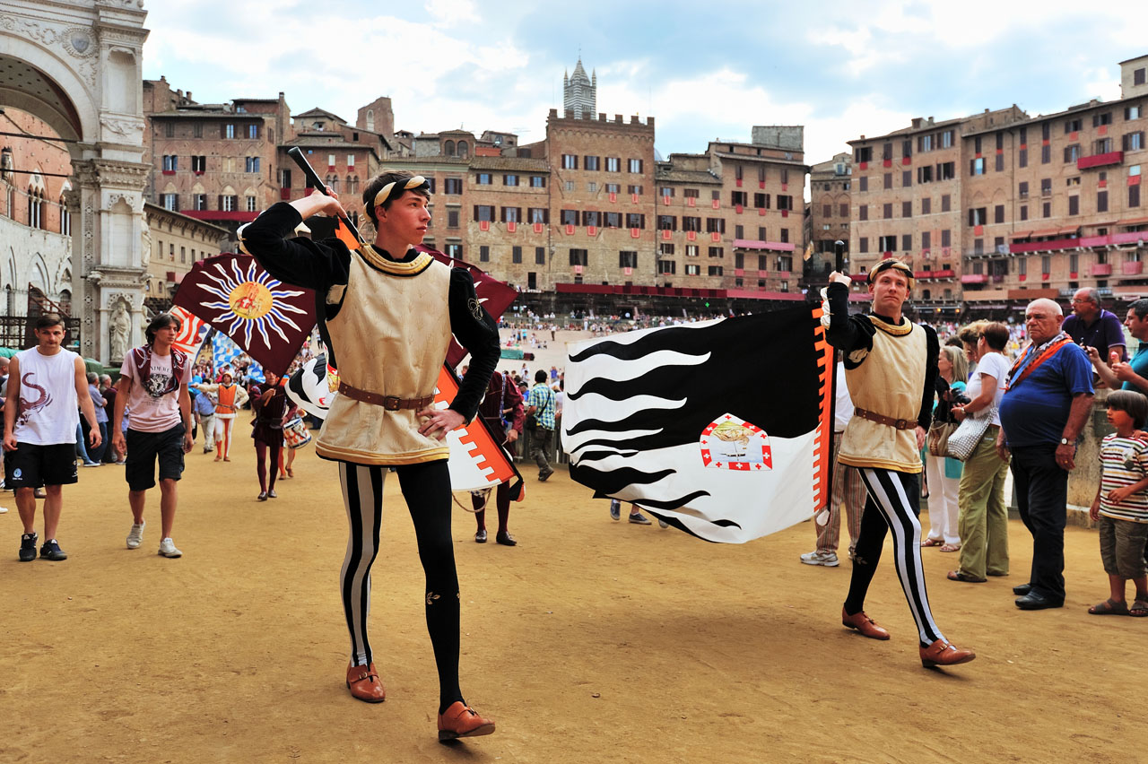 Pro bmx - všechny fotky z posledních dnů byly ze Sieny v Toskánsku. Psal jsem to jen na začátku, to se snadno ztratí. Polepším se. V létě tam 2x dělají koňský závody na náměstí, je to takovej cirkus. Soutěží mezi sebou asi 17 historických čtvrtí města. Vlajkosláva s bubnováním byla den před závody, nachomejtli jsme se náhodou, původně jsme jeli jen na prohlídku města.