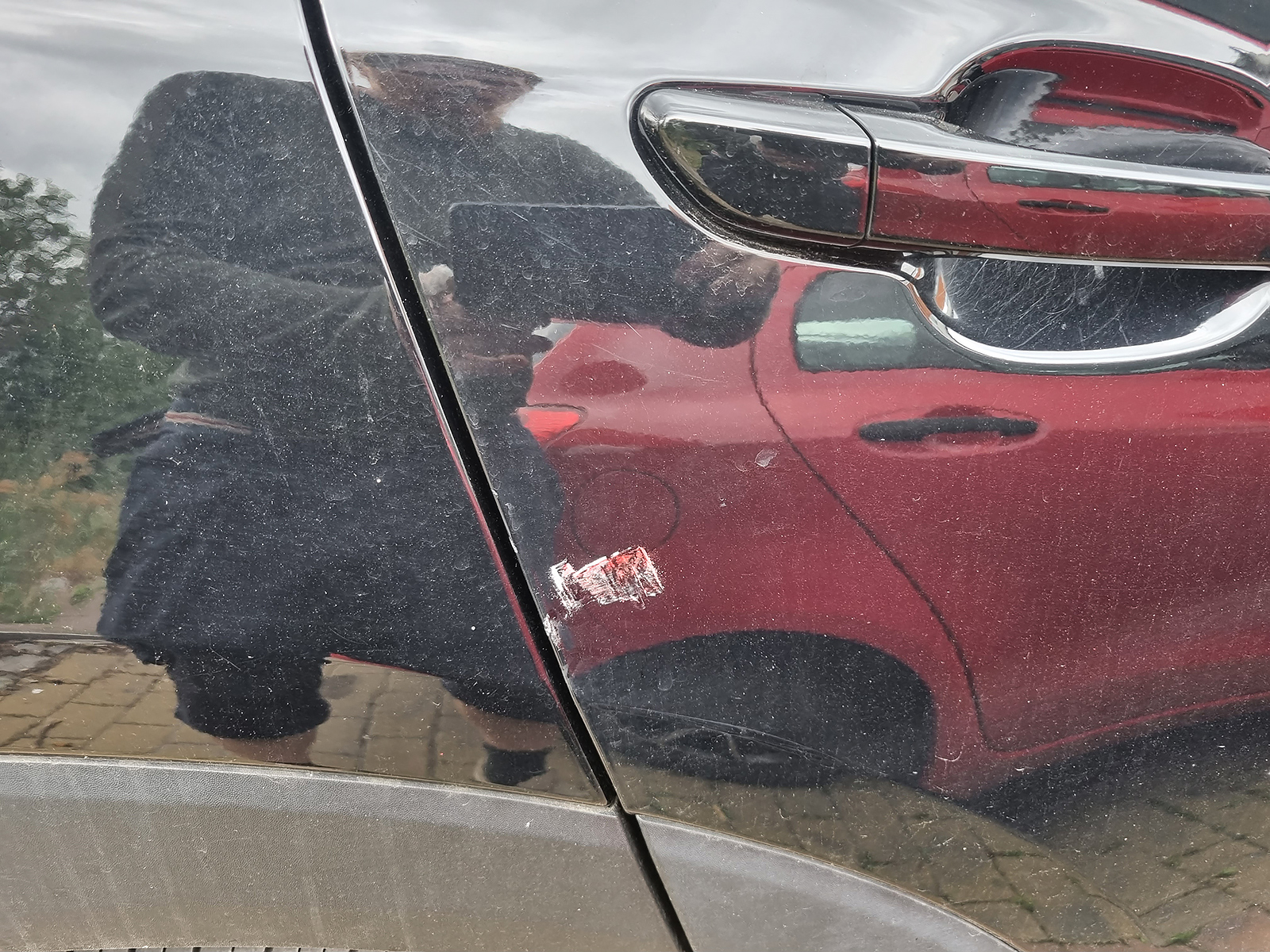 To je z neděle po tom co tam narval ty dveře našeho auta do zaparkovanyho vedlejšího auta.