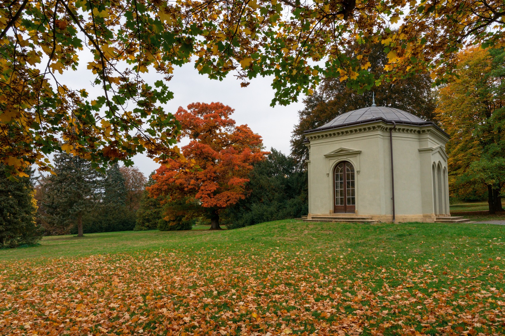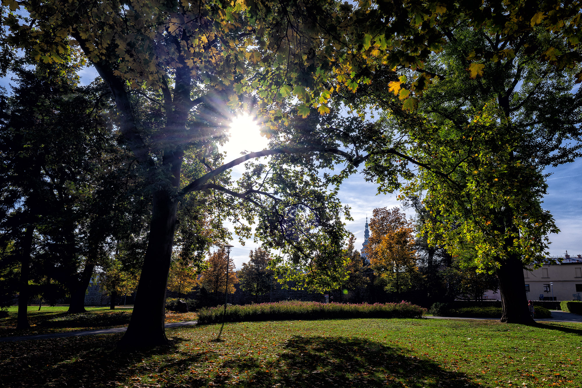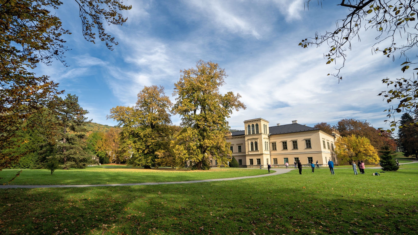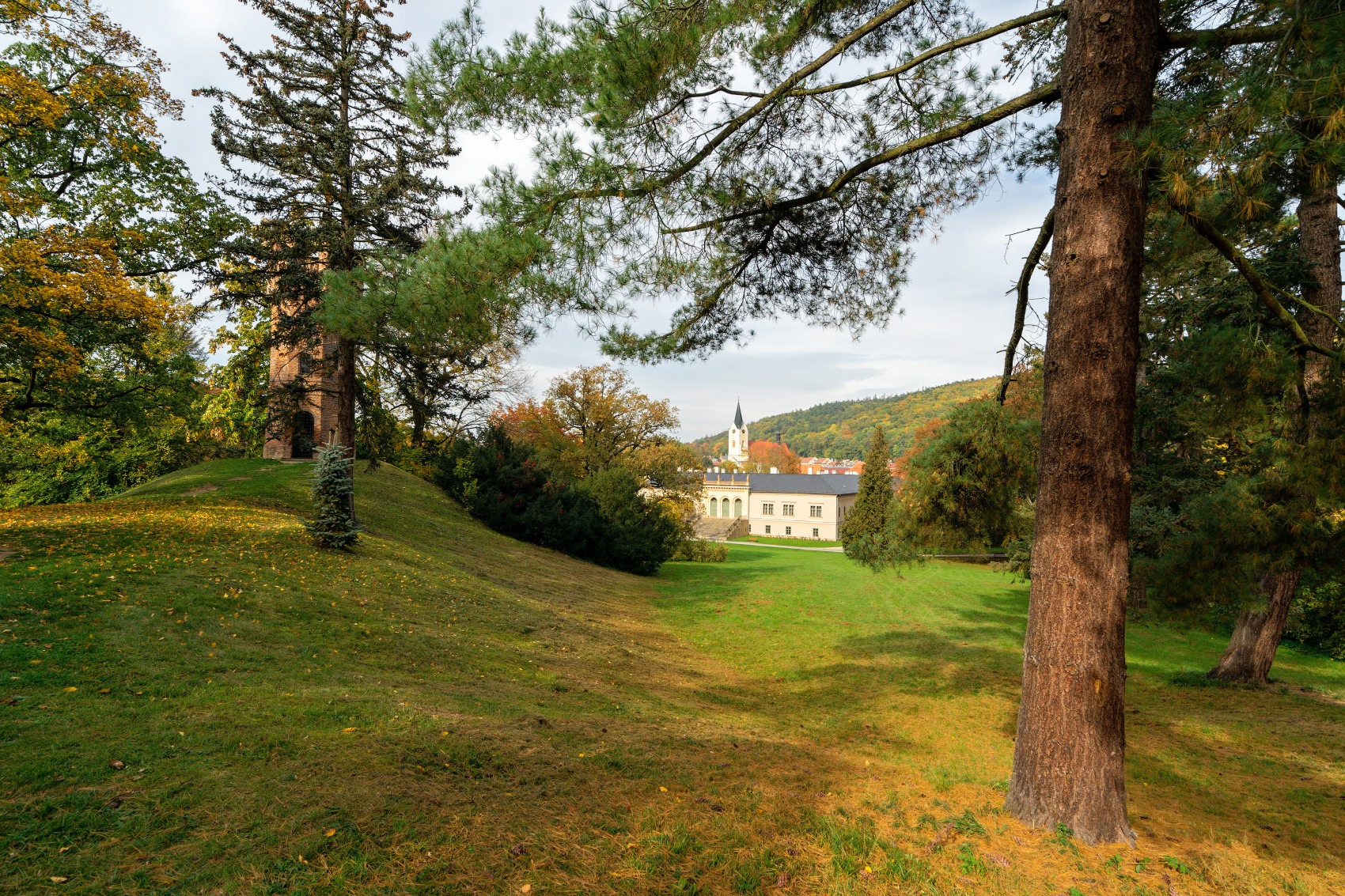 Park u vily a hrobu prezidenta Beneše.
