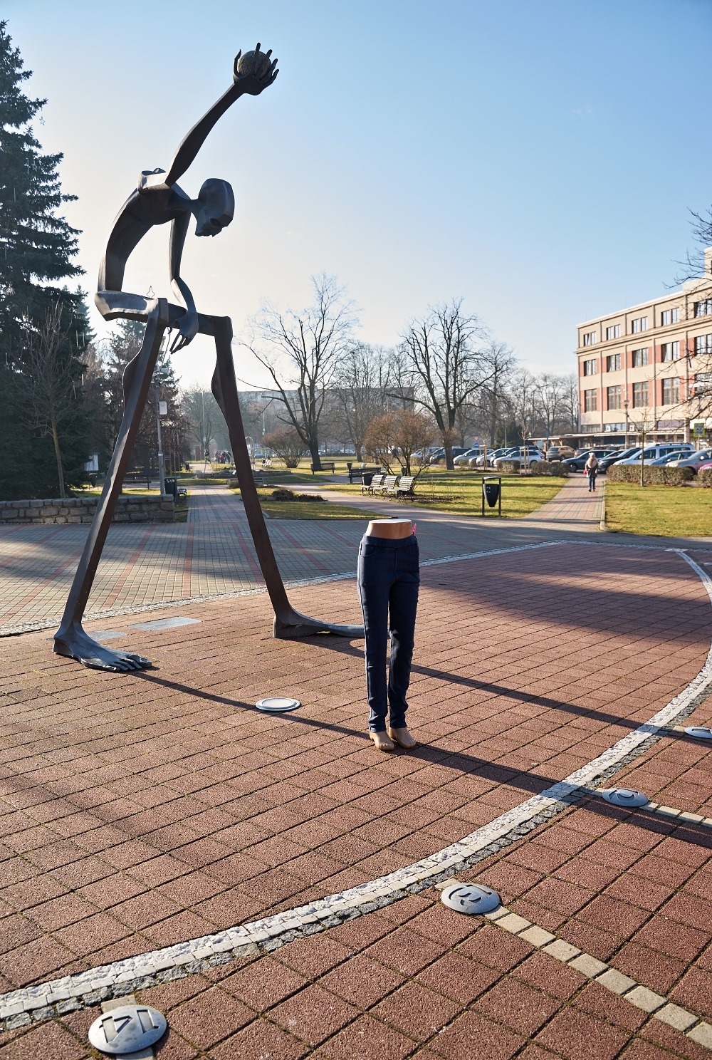 10. ledna 2020, v dobu focení, byla pravá noha a ruka s koulí v zákrytu, pravé místní poledne podle Slunce, podle přírody.