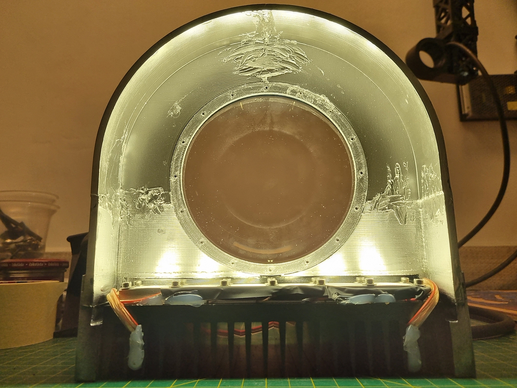 Prostě šest 40W LED Cree je znát. Ještě že jsou/jdou stáhnout na zlomek plnyho výkonu. :)