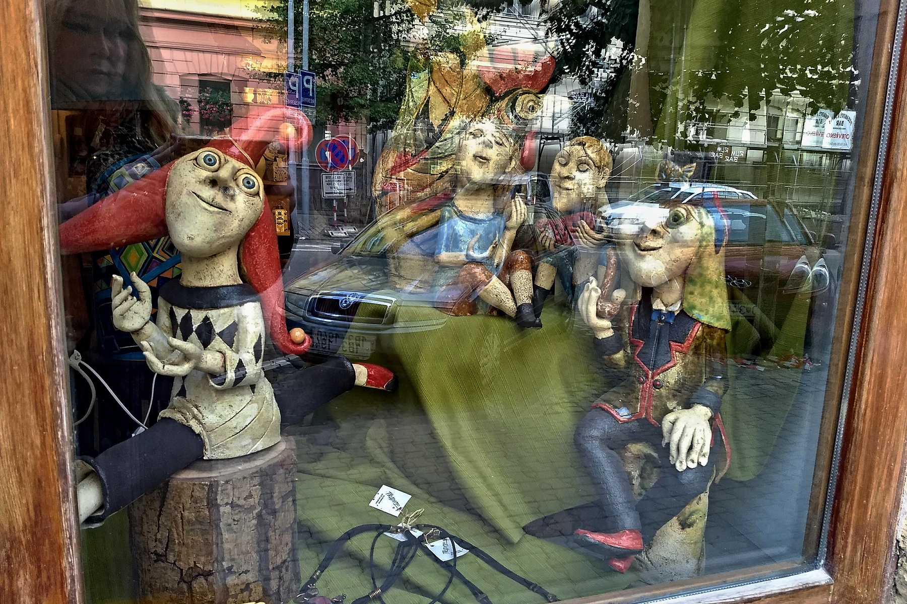 Kočička za voknem moc pěkná. Klaun ne z Brna taky.