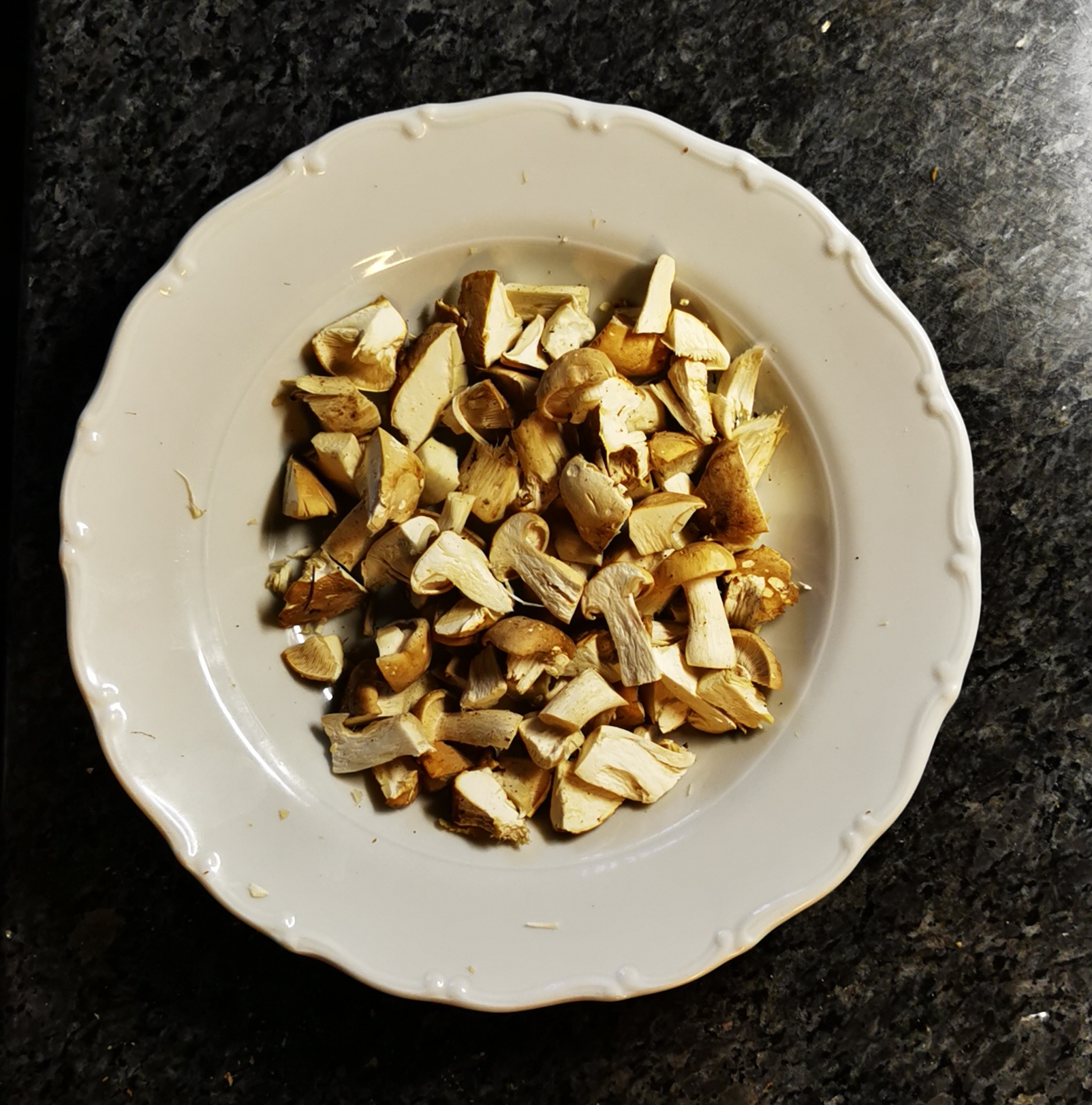 To nebude Vulpes vulpes (Liška obecná), ani Cantharellus cibarius (Liška obecná), ale nakrájené se to těžko pozná, možná čirůvka májovka a nebo podobné.