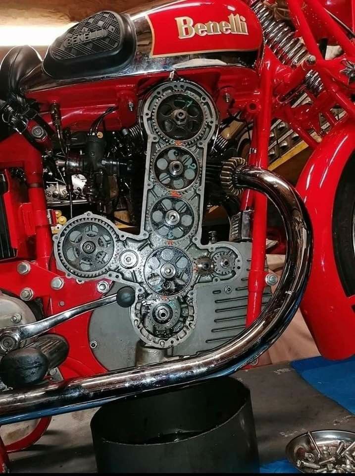 Nějaké moto unikáty: Bianchi 500 čtyřválec 2x OHC, 1939. Benelli rozvod OHC soukolím.