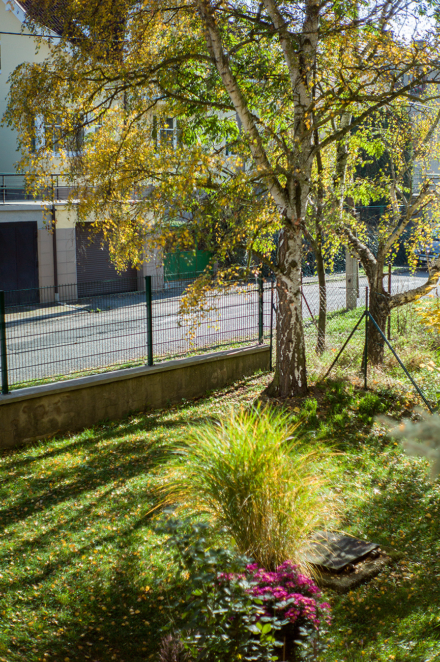 Takže také jeden takový pokus. Zatím jenom z okna. Ostřeno na kmen stromu. ;)