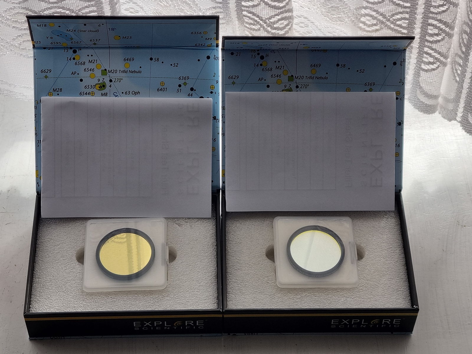 U těhle filtrů, na noc, nezáleží na umístění, z důvodu bezpečnosti, ale sluneční UV/IR vnitřní co nejblíže k objektivu,