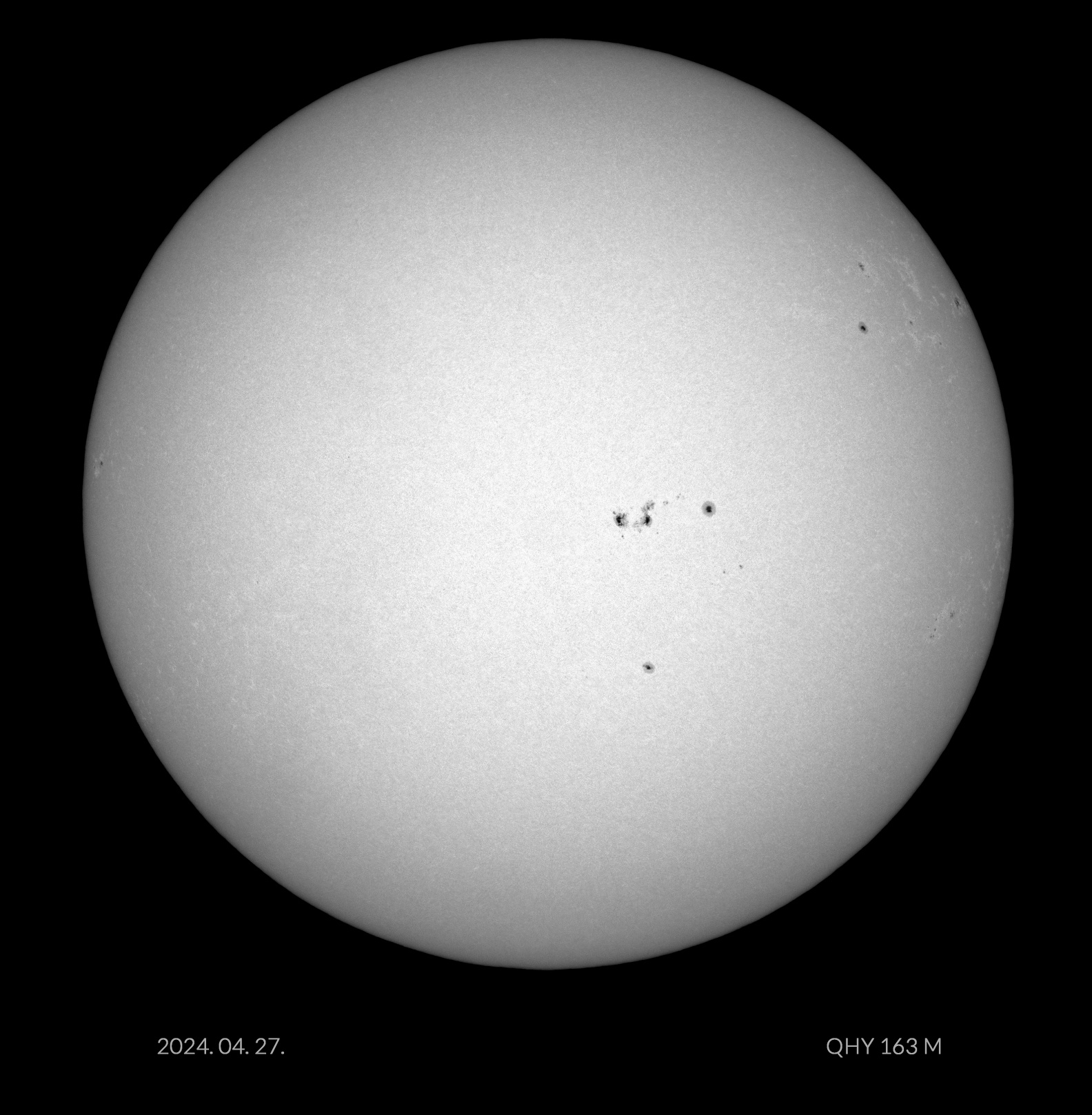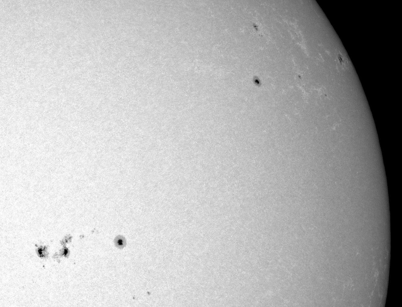 Černobílé pokusy a dnešní Slunce. Fleky na fotkách s násobíčem a konvertorem odhaleny v podobě mikročásteček na krycím skle snímače, což se bez násobiče/konvertoru, nezobrazilo. Vyčištěno.