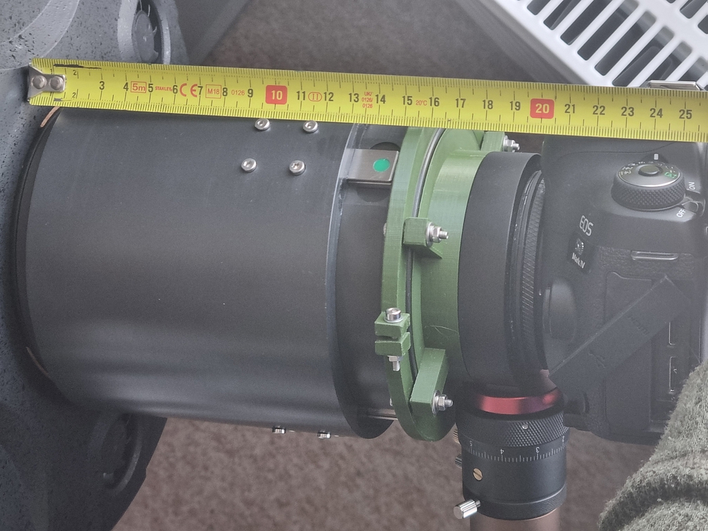 Ale mělo by to teď už být snad bez problémů. Teda snad se mi s tímhletím povede zaostřit na nekonečno. Pokud by ani s tímto furt ještě nešlo dosáhnout nekonečno, tak už bych musel zkracovat vzdálenost mezi OAG a DSLR, kde jsou ještě rezervy, protože tam jsem se o minimum zatím nesnažil.
