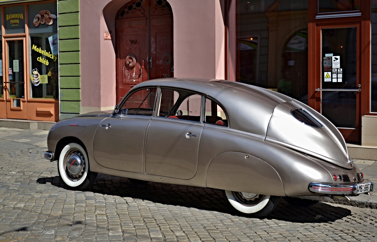 Ale na spaní je ještě pořád v zahradní rezidenci horko ... Tak přidám autíčko. (blbec jsem blbej, v sobotu byl na náměstí start historických vozidel auta a moto a závoveň byla ukázka dobových kostýmů a oblečení první republiky , a já o tom nevěděl
