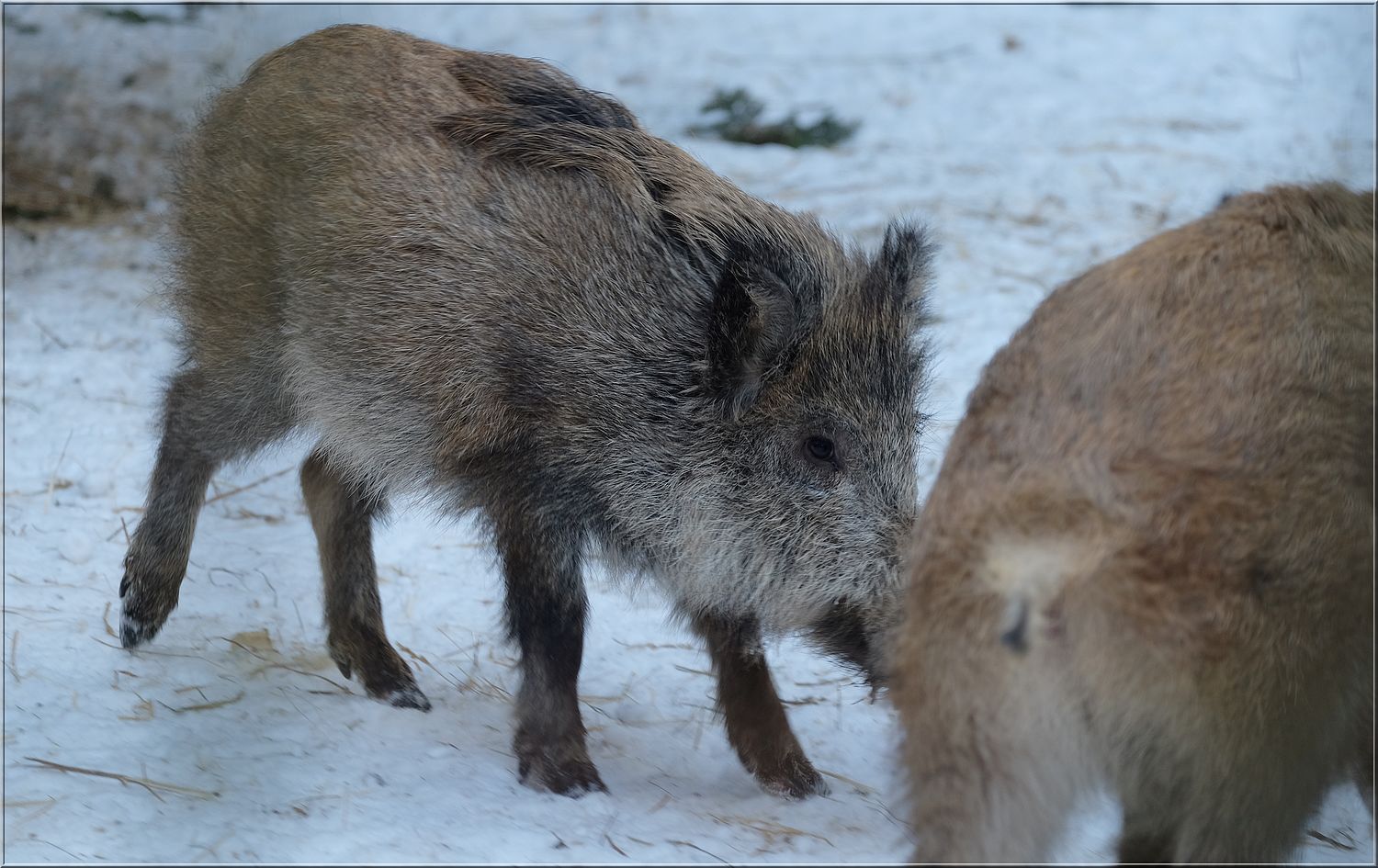Jirulo, ty prasátka jsou roztomilý, ale z těch jejich zubů by jeden měl mít respekt. Myslím, že jím myslivci říkají páráky, nebo klektáky? Nevím, které jsou které. (n)