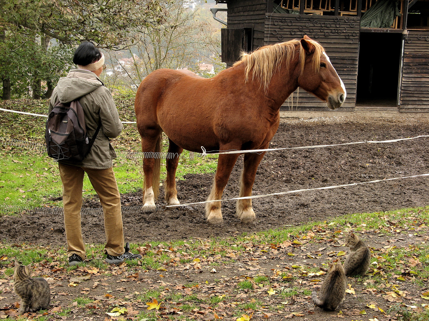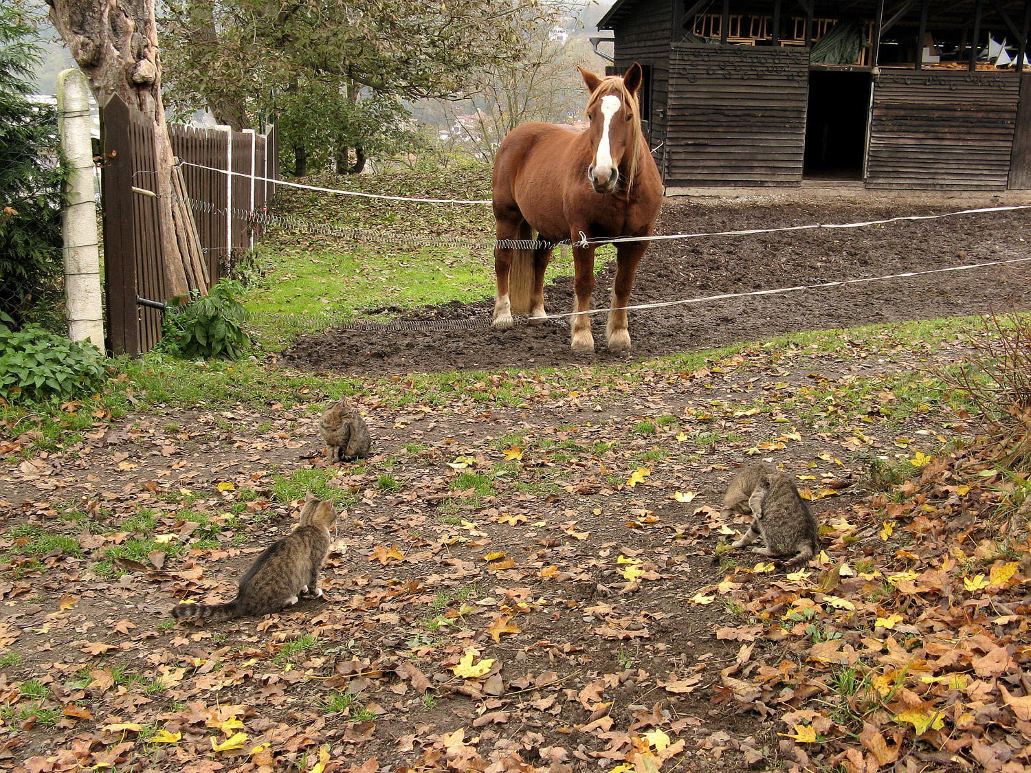 Kočky a koník. A tygr Osmana Laffita v Nižboru u jeho vily, bývalé hvězdárny.
