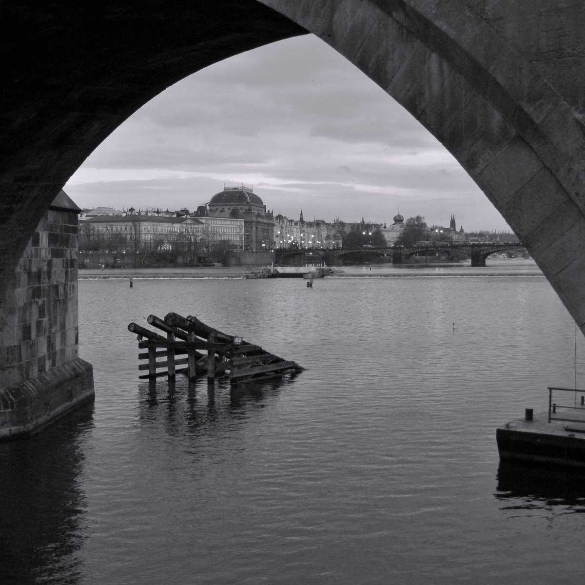 Krásně plulo po Vltavě. Tady ho už vytáhli ke břehu.