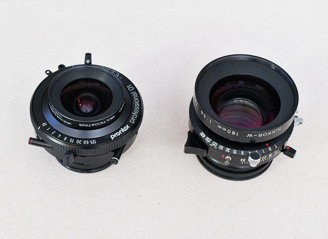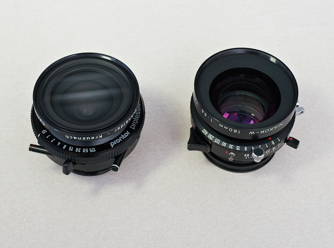Ty širokáče pro mou bedýnku použít jdou, protože bych je použil stejně jen na krajinky a v tom případě by stačilo, abych je usadil do hyperfokální vzdálenosti třeba pro clonu 11. Tak i usadím očekávaný Super Angulon 65 mm. Bude na destičce, kterou na bedýnce přehodím s destičkou s Tessarem 135 mm.