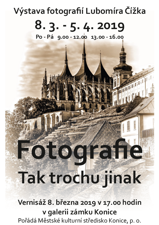 Luboš píše:..tento pátek mám vernisáž výstavy fotografií na zámku v Konici... cca 40 fotek 50x70cm, takže kdybyste někdo jel okolo