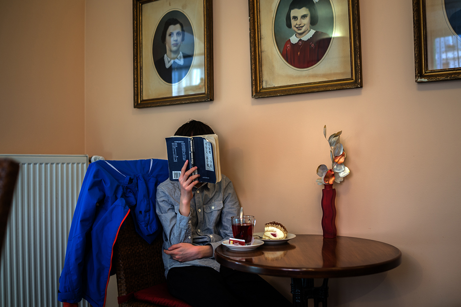 Je to chlapec a sice z hodně dálného východu. Četl si asi nějakou napínavou knížku, protože zapomněl jíst zákusek.