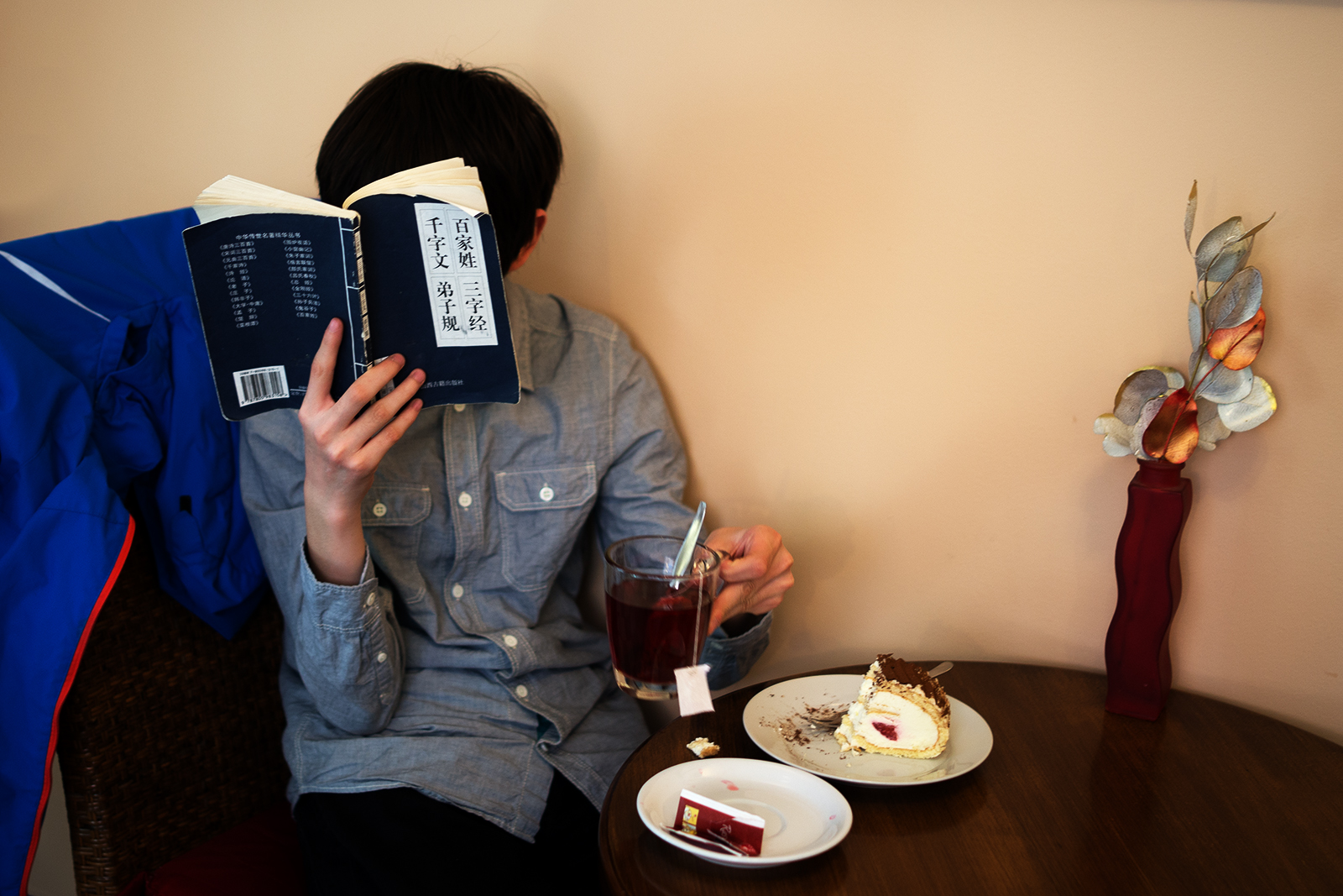Stando, když jsem se na něj díval z jiného úhlu, abych mu viděl do obličeje, sledoval jsem jeho oči, abych alespoň viděl odkud kam to vlastně čtou, ale s níma po stránce tak rychle, že jsem poznal prd.