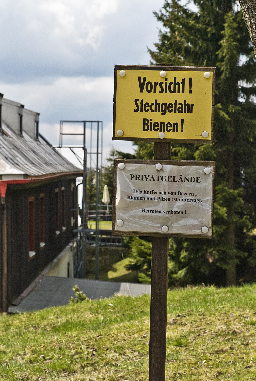 Komu se to nechce překládat, tak majitel varuje před pobodáním včelami. Platí to asi ale jen pro Němce, neb tabulka je ještě na našem území a české varování zde není. ( Boží Dar )