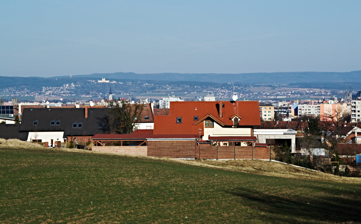 Pohled od letište směrem na východ -Olmic je v ďolíku
