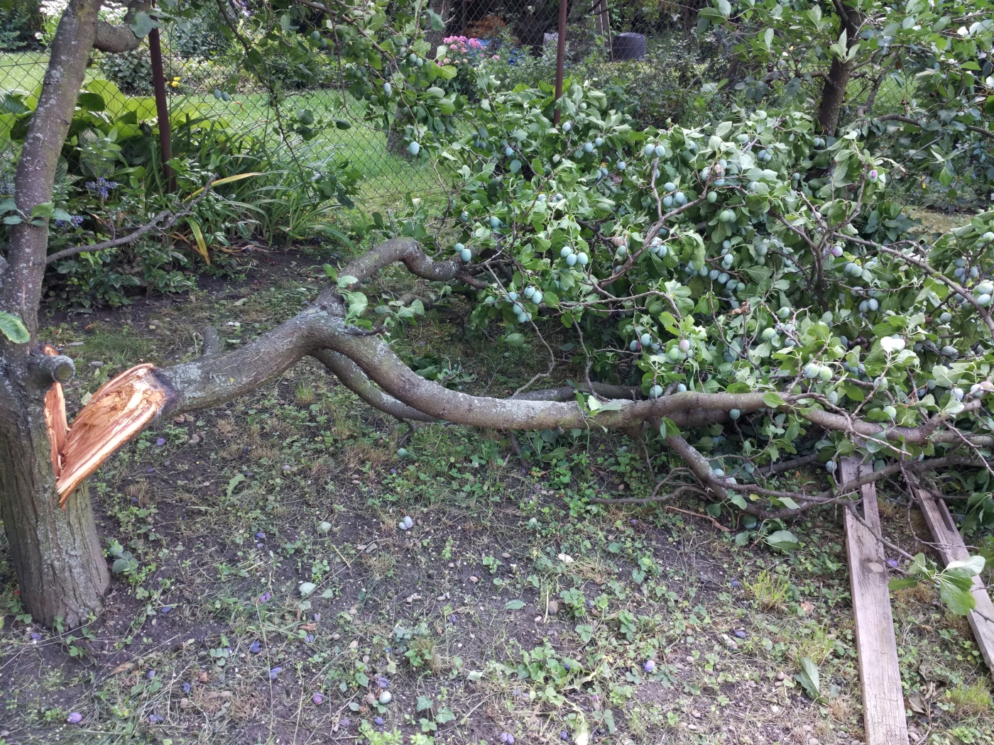 Luboši, tak to je škoda. Ale pokud jste to už neuřízli, tak by se dal pouřít roubovací tmel a páska (asi hodně metrů) a opora (berle) pod větev a třeba by se to ještě dalo zachránit, ještě nejsou poškozené všechny mízní "žíly".