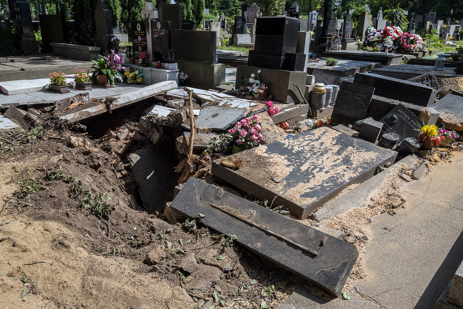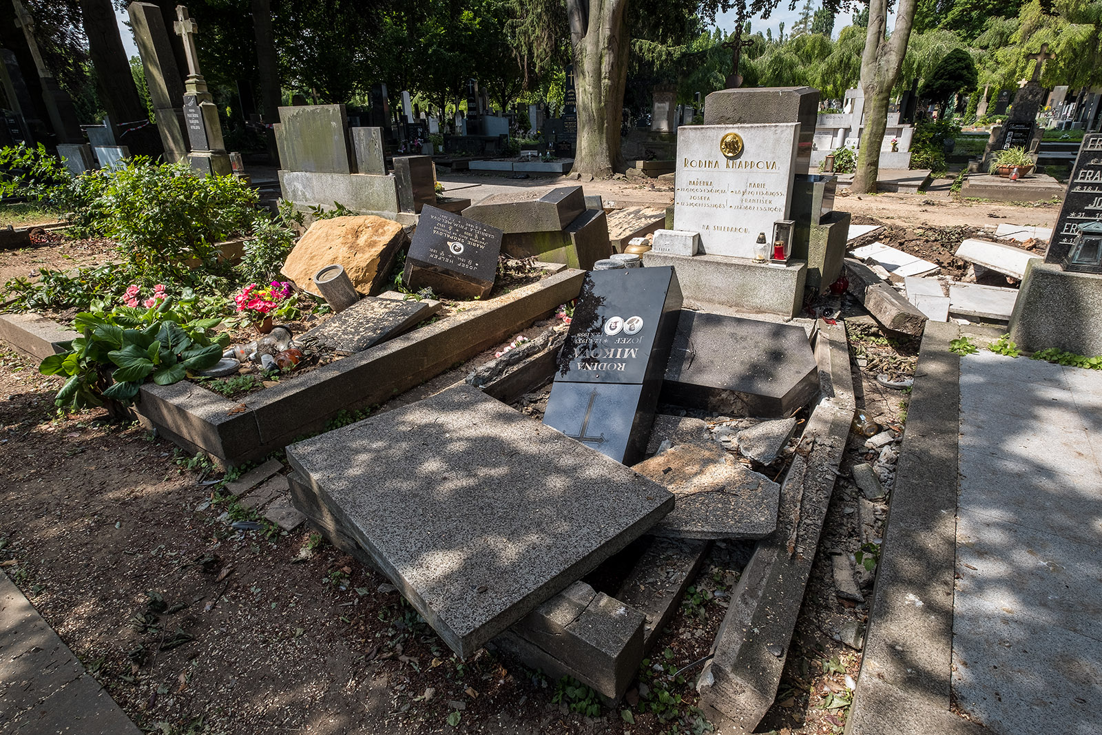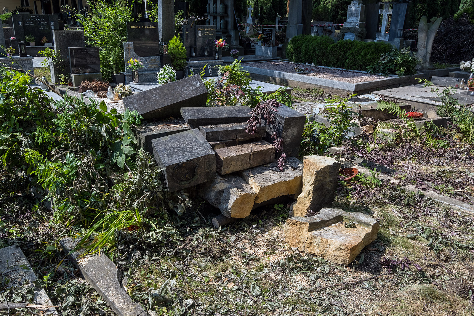 Prostějovský hřbitov po pondělním větru...popadané stromy už odvezli..