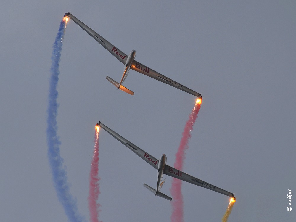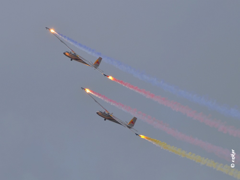 Zajímavá situace na MAS 2019, zatáhlo se a dýmovnice na Blanících snad ještě s nějakou světlicí ovlivnily výrazně expozici k ještě tmavší obloze. Předvedení L-159 s flerami skončilo požárem v obilí, hasiči to ale zvládli dobře, to bylo tím Podřípským suchem .