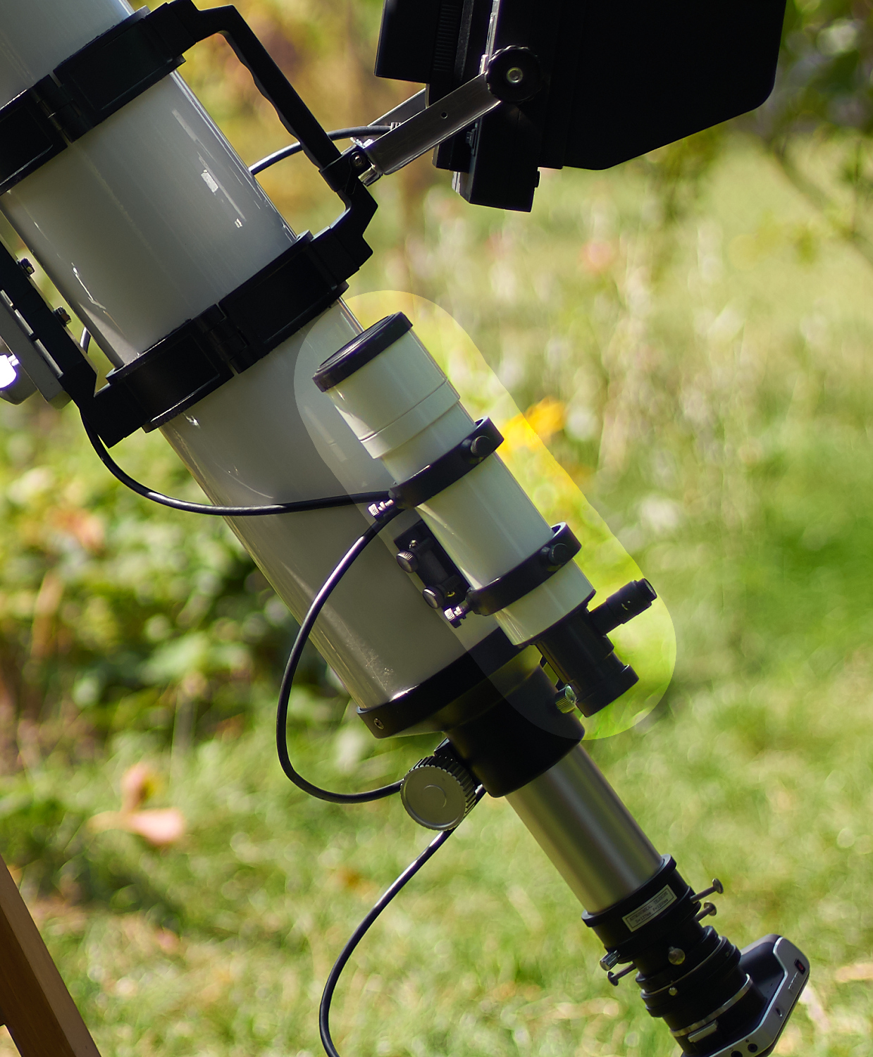 Kolimovaný hledáček s dalekohledem, aby koukaly tak nějak na stejné místo :D
