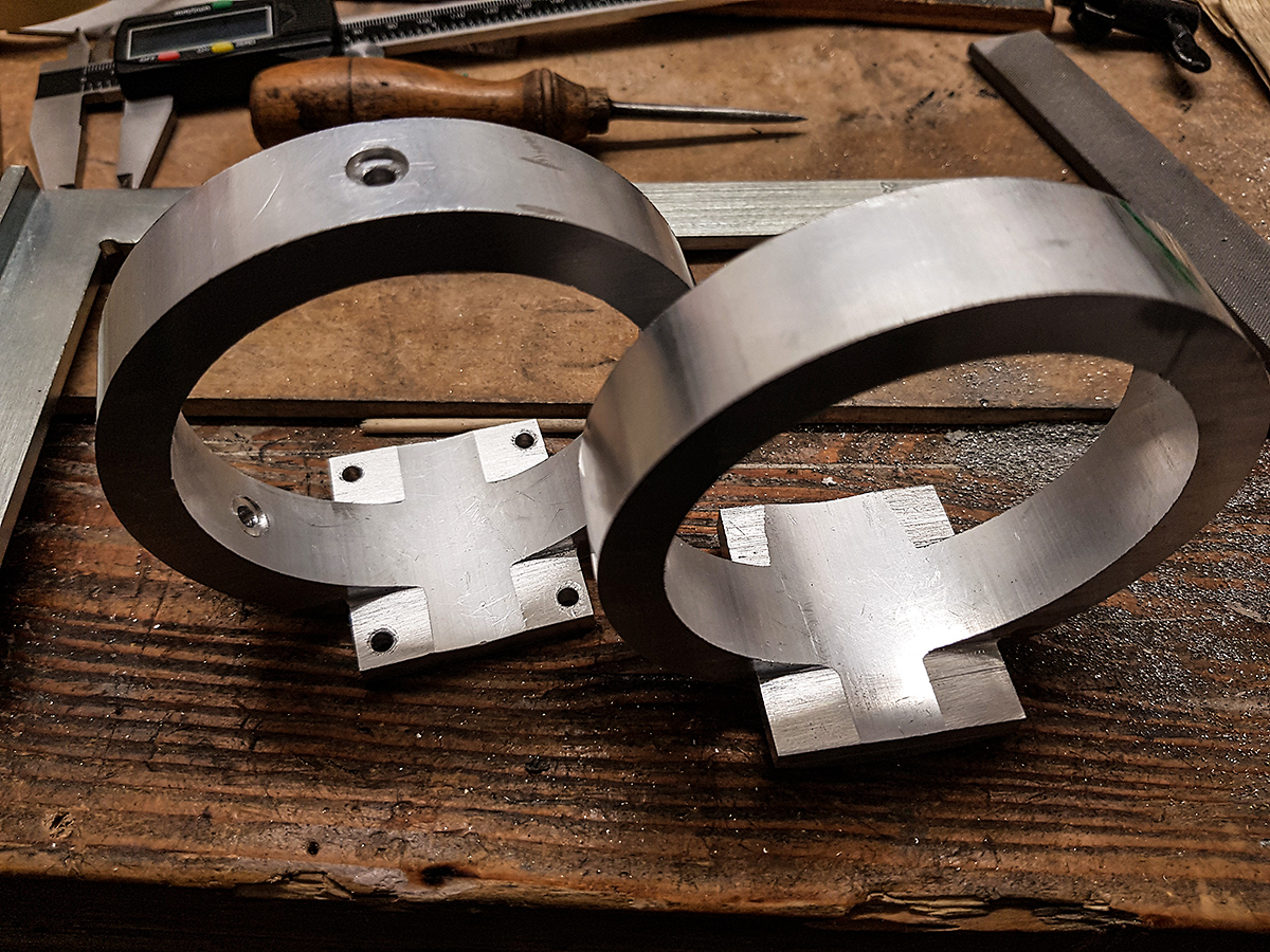 Už jsem aj zahloubil všechny tři díry po obvodu prstence zevnitř. Sice by to mohlo být zahloubeny i víc (aby se tam schovala klidně celá Nord-Lock podložka, ale on je to dost záběr na prsty, tak alespoň takhle)...