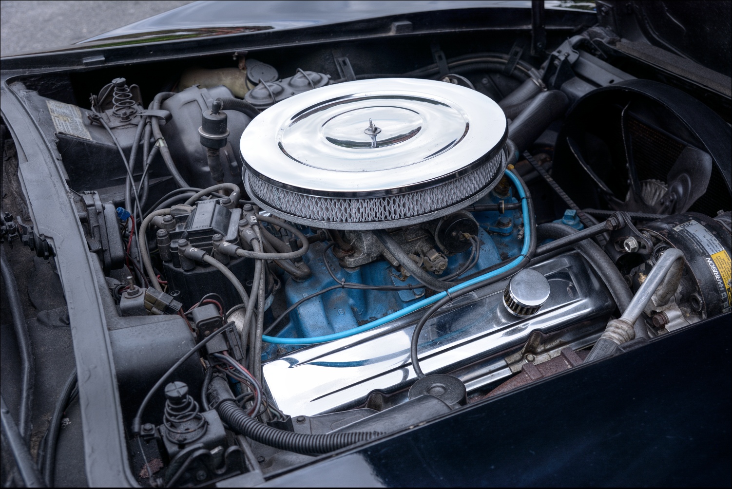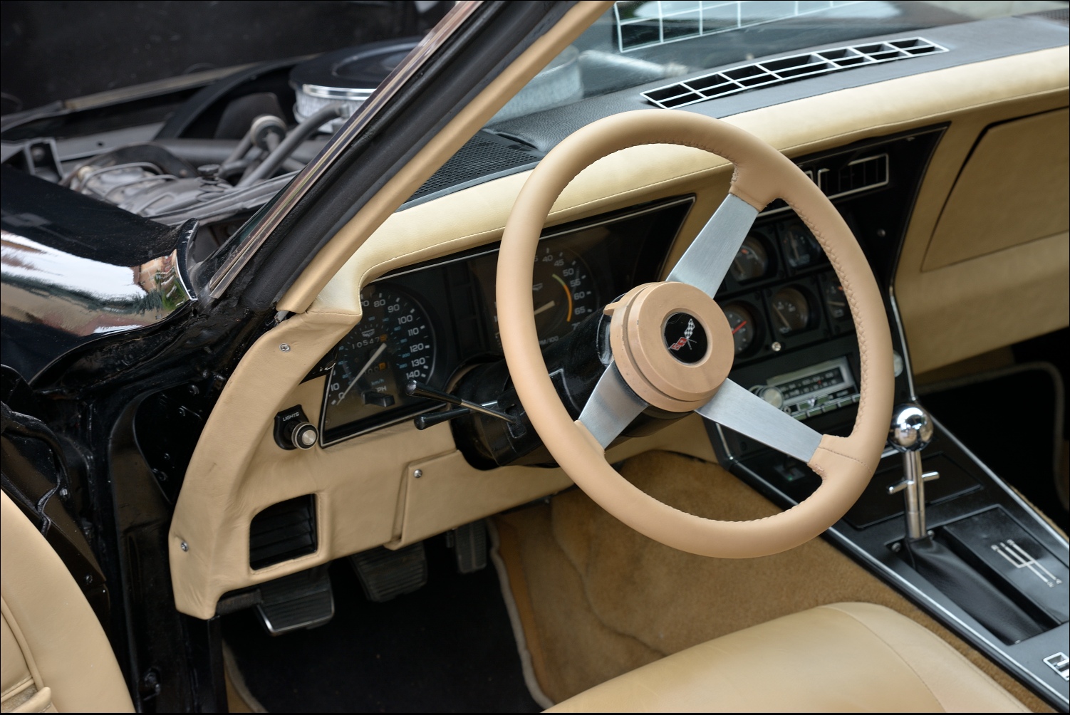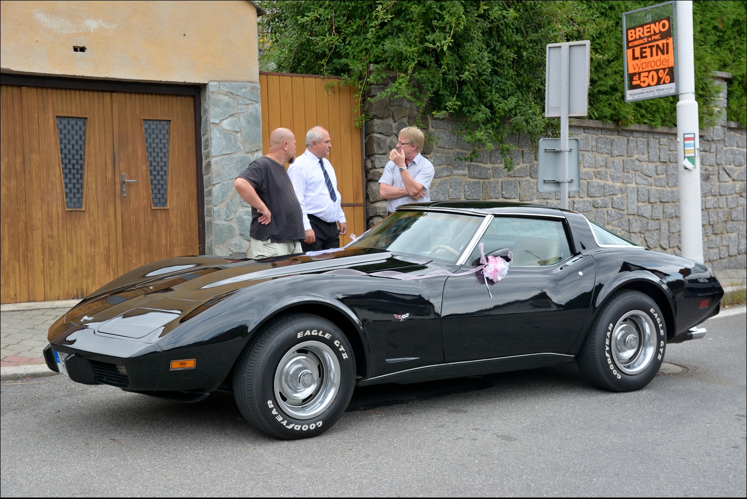 Korveťák Chevrolet a jeho ladné tvary. V8, 5 litrů obsah. Zvuk jak několik Harleyů a točivý moment pěkně od spoda. :D