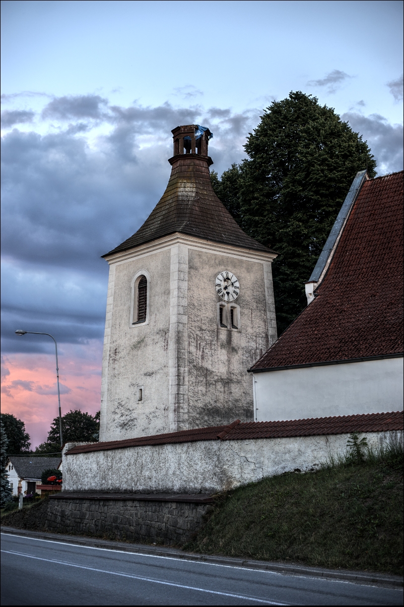 kostel s věží mimo, navíc s chybějící korouhvičkou...