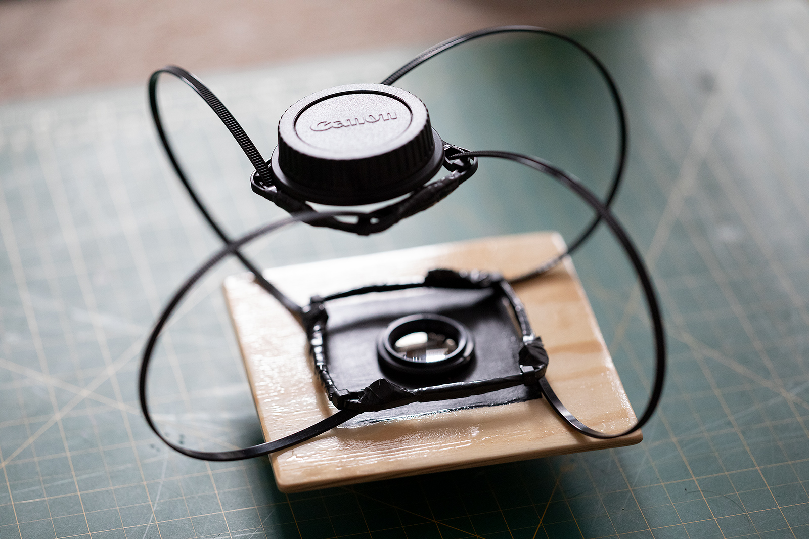 Zatím drženo v ruce a reálný obraz je 14,4 x 9,6 mm plochy matnice, což je 2,5x zvětšení na FF snímač. :-)