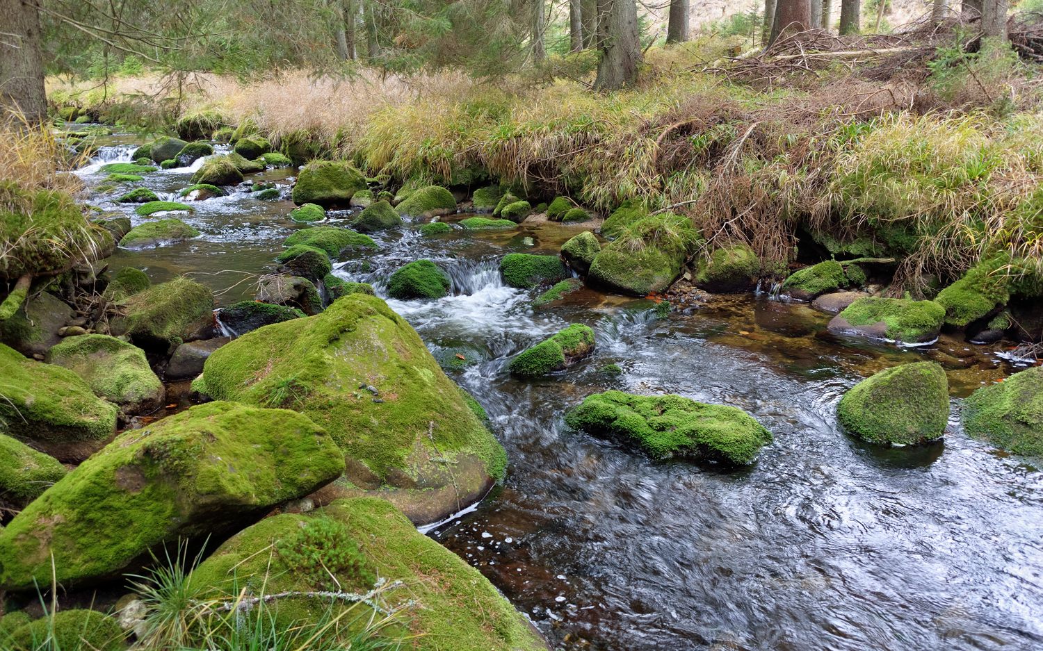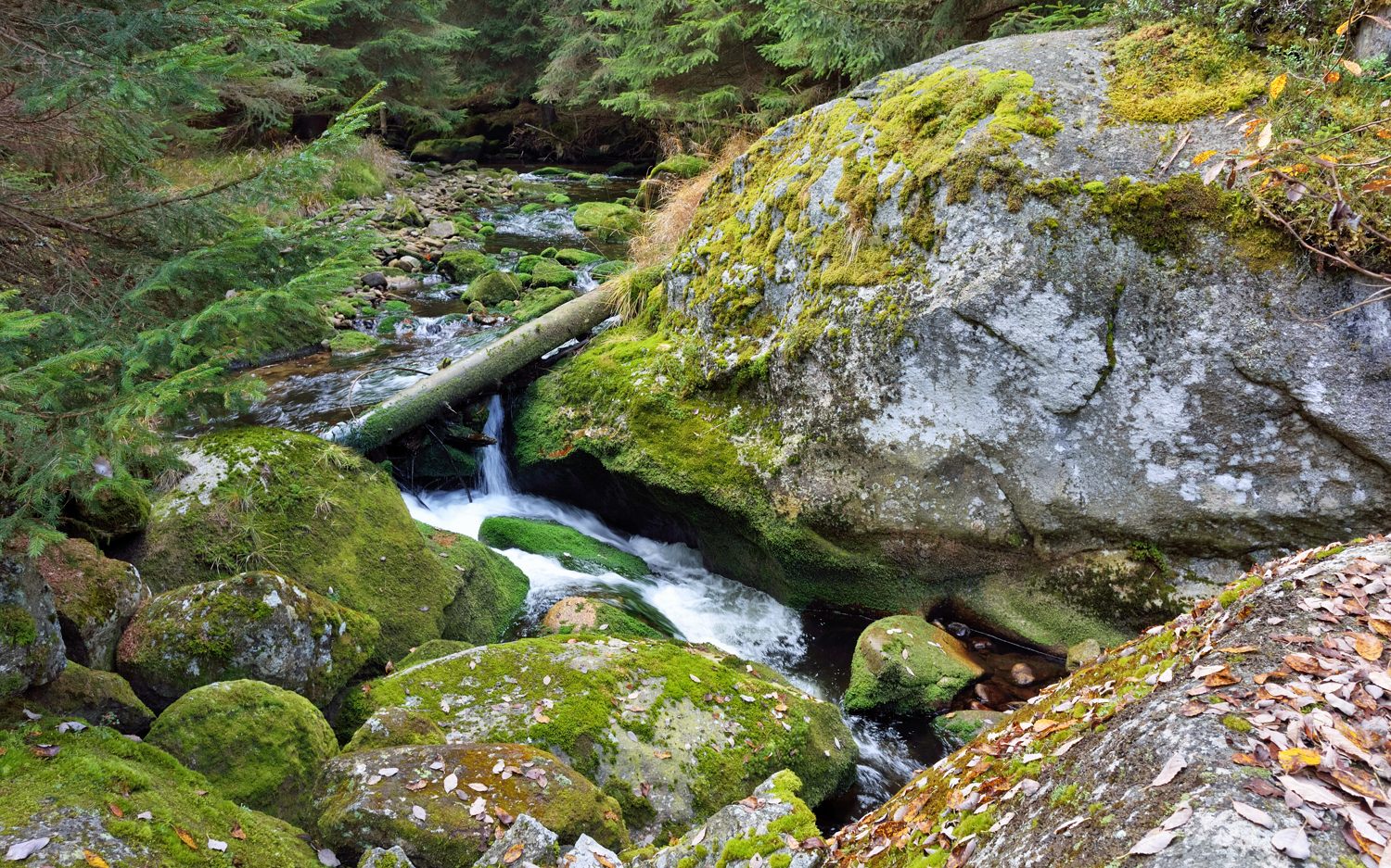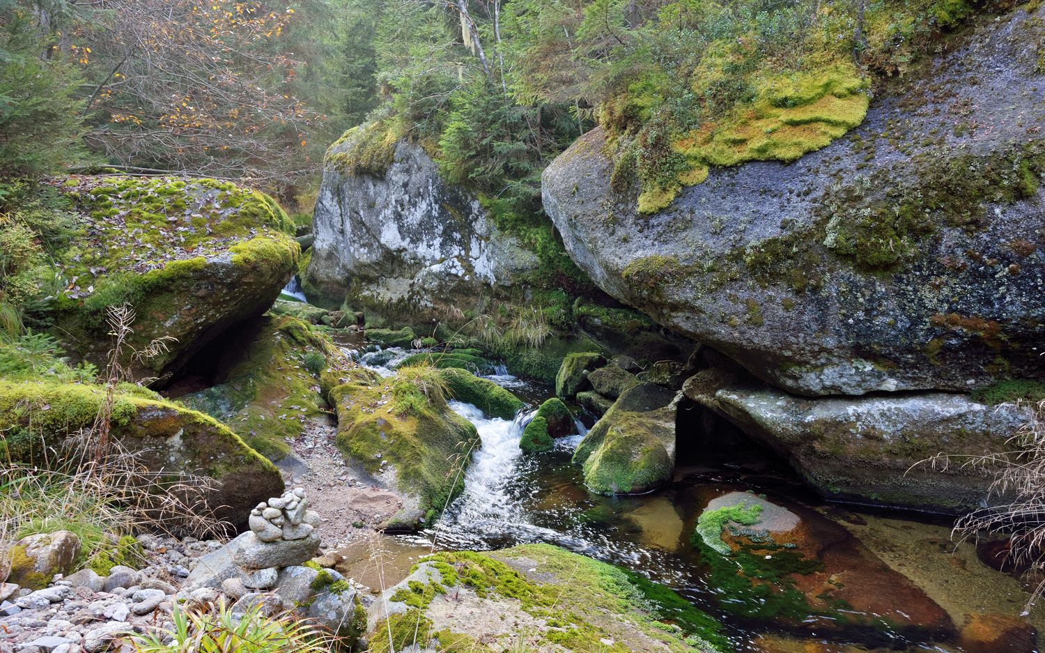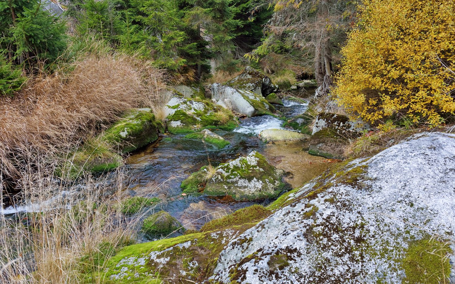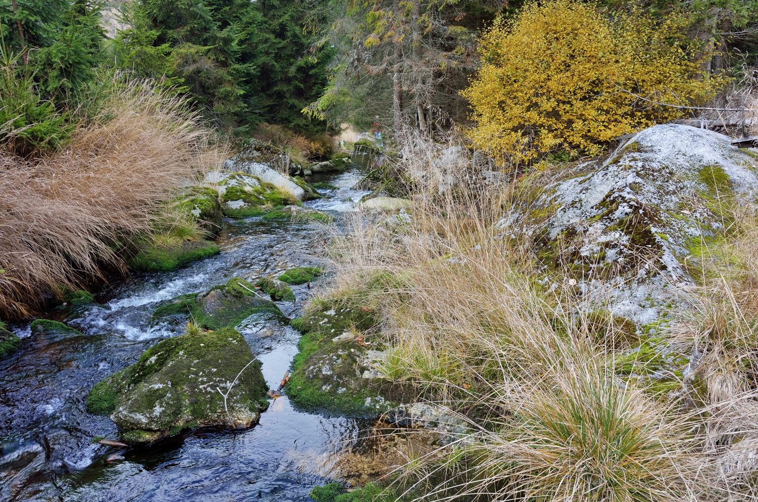 Ruby Tatry pěkný, fišáj slouží dobře. Tady taky poprchvává a mží, anglické počasí. Zítra má být líp. Ale byli jsme s mladší dcerou oslavit 20 narozeniny, oběd byl prima. Dám pár fotek od svého oblíbeného potoka Světlá u Stožce z minulého týdne, má to tam rád taky Josef (mosoj), třeba se koukne. Království mechu, sluníčko vylezlo až odpoledne.