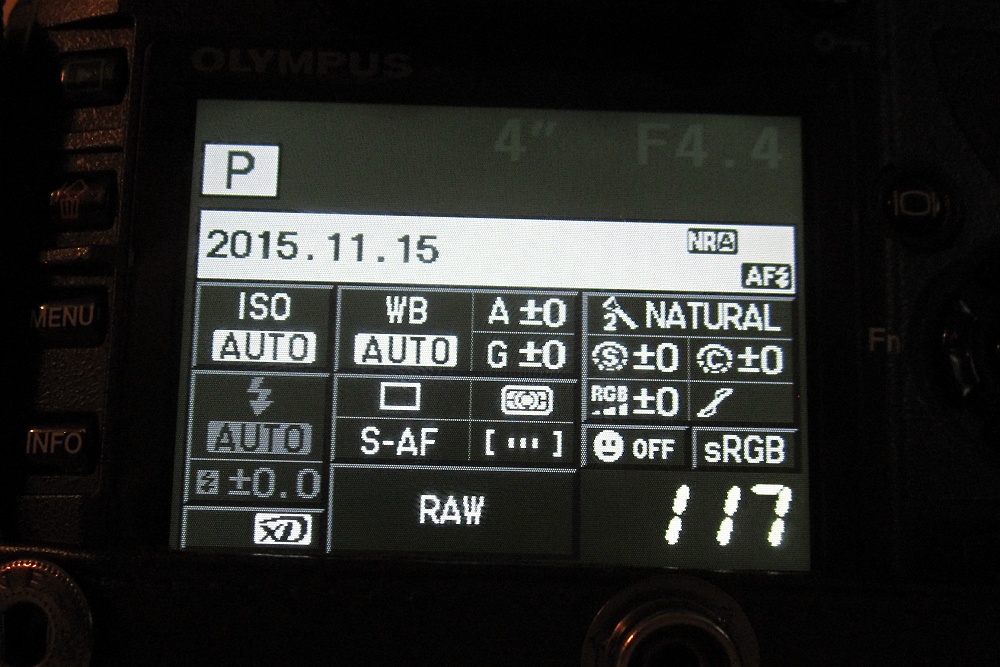 A k ISO 800. To tam zůstalo od minule. Jenže když na displeji hovno vidím, tak tam klidně můžu mít 1600 celý den, když si nevzpomenu. Jo, to Oly, ten měl aspoň menu, a ta velká písmena a číslice. Měla jsem si nechat Olyho. To byla aspoň mašinka.