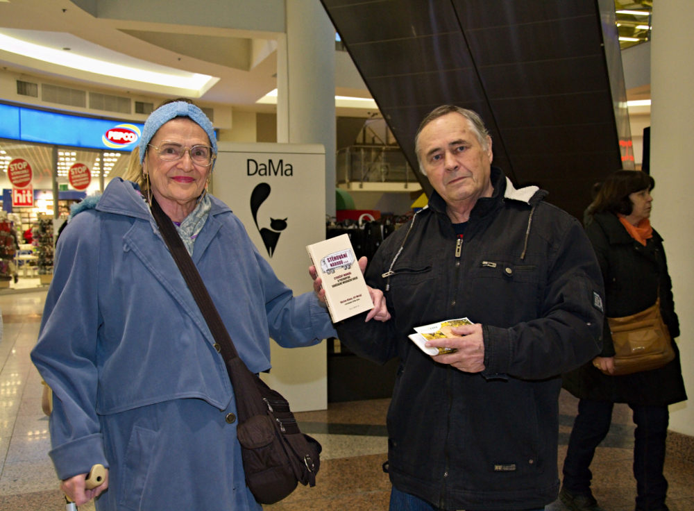 Šťastní senioři po získání podpisu do knihy